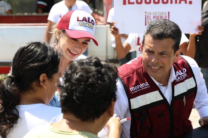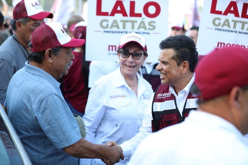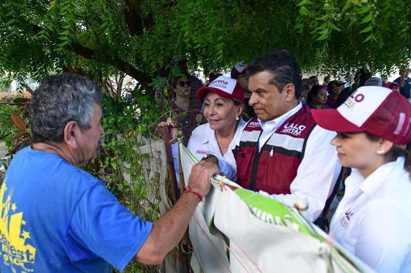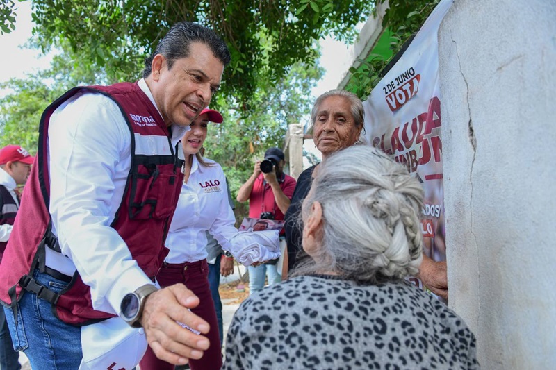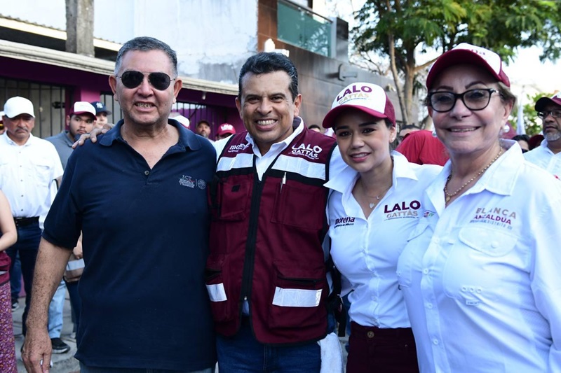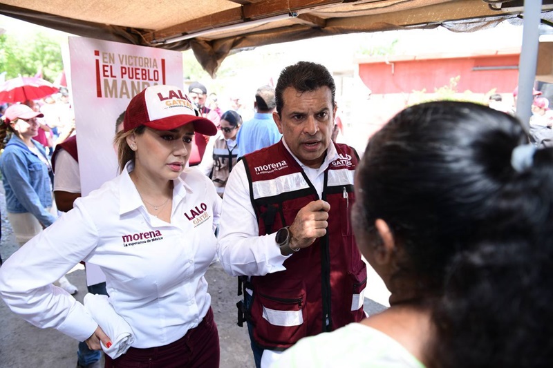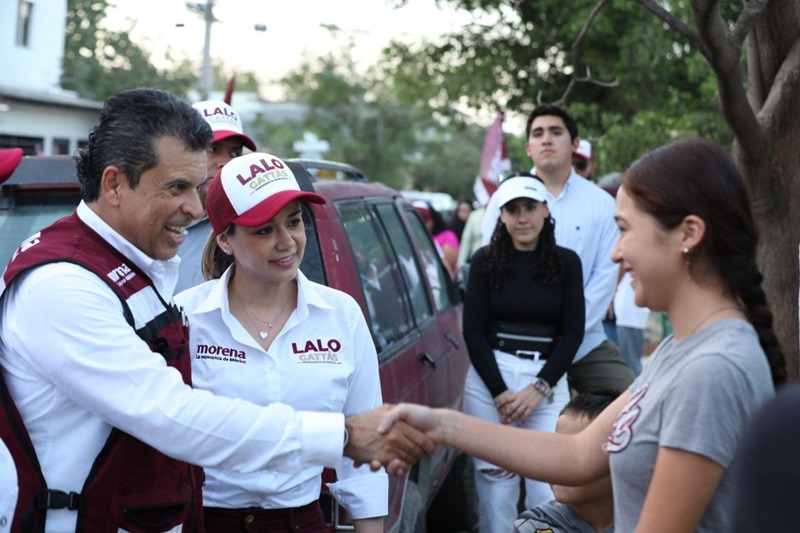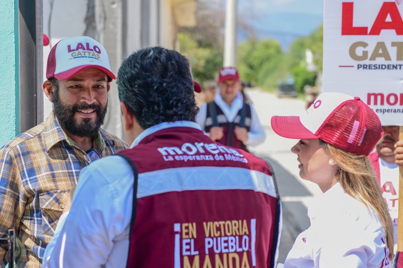 CIUDAD VICTORIA, TAMPS. Al frente de la ola guinda y con paso firme, Lalo Gattás y su esposa Lucy recorrieron este martes las colonias Moderna e Ignacio Zaragoza donde recibió el respaldo contundente del electorado para avanzar juntos hacia el triunfo y la transformación de Victoria.