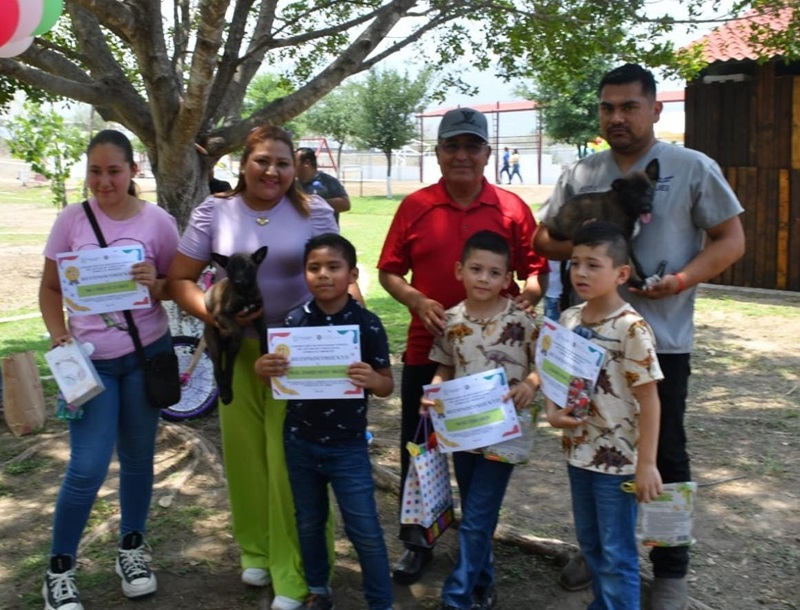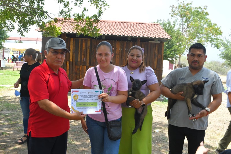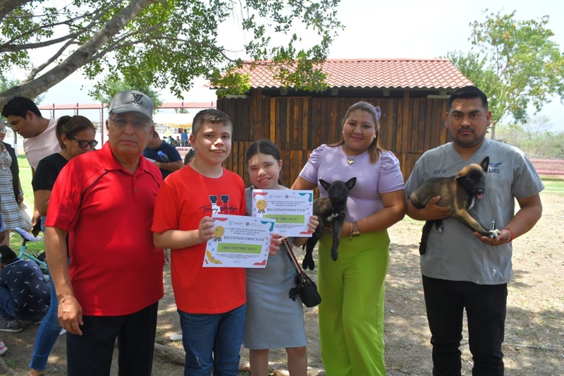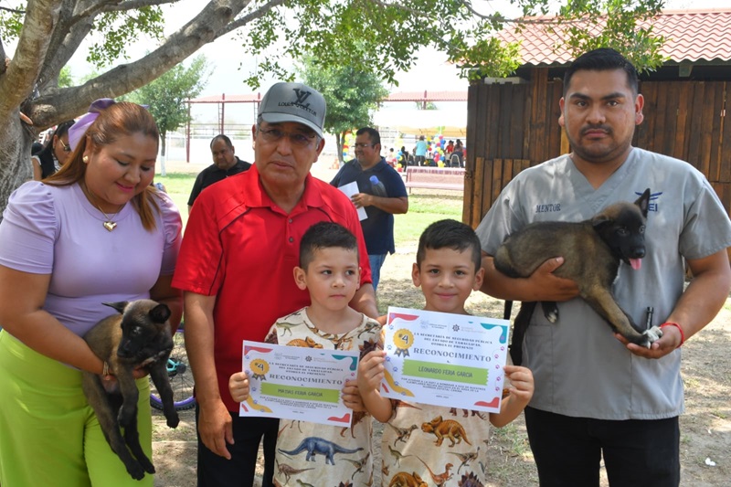 CIUDAD VICTORIA, TAMPS. La Secretaría de Seguridad Pública de Tamaulipas (SSPT) premio a las ganadoras del concurso para nombrar a dos cachorros (macho y hembra) del Agrupamiento canino.