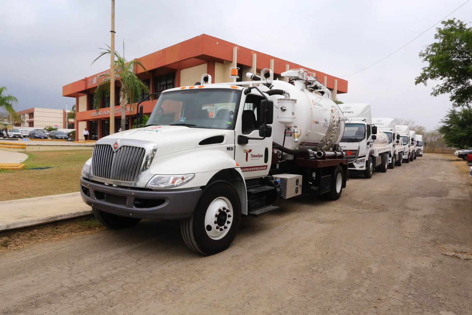 Al término de la ceremonia, el gobernador e integrantes del gabinete estatal dieron el banderazo de salida a cinco pipas para el transporte de agua donadas por Petróleos Mexicanos en beneficio de la Secretaría de Recursos Hidráulicos para el Desarrollo Social y un camión “vactor” para el Ayuntamiento de Victoria.