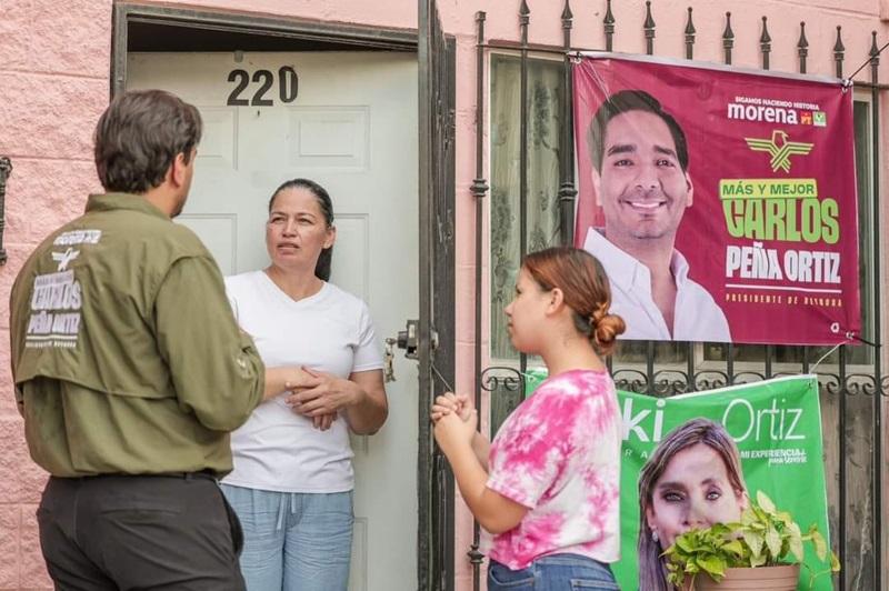 REYNOSA, TAMPS. Carlos Peña Ortiz, candidato de la coalición Morena–PT–Verde Ecologista de México, demostró una vez más su cercanía con la ciudadanía al recorrer las calles de la colonia Villas de Imaq en busca de apoyo para su reelección como Presidente Municipal de Reynosa.