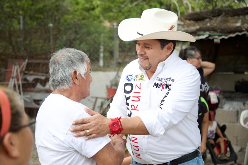 Acompañado por el candidato a alcalde José Lorenzo Morales Amaro, el abanderado priista sostuvo encuentros con simpatizantes, dialogó con campesinos, estudiantes, amas de casa y recorrió las principales calles del poblado El Carmen y el Ejido Miraflores.