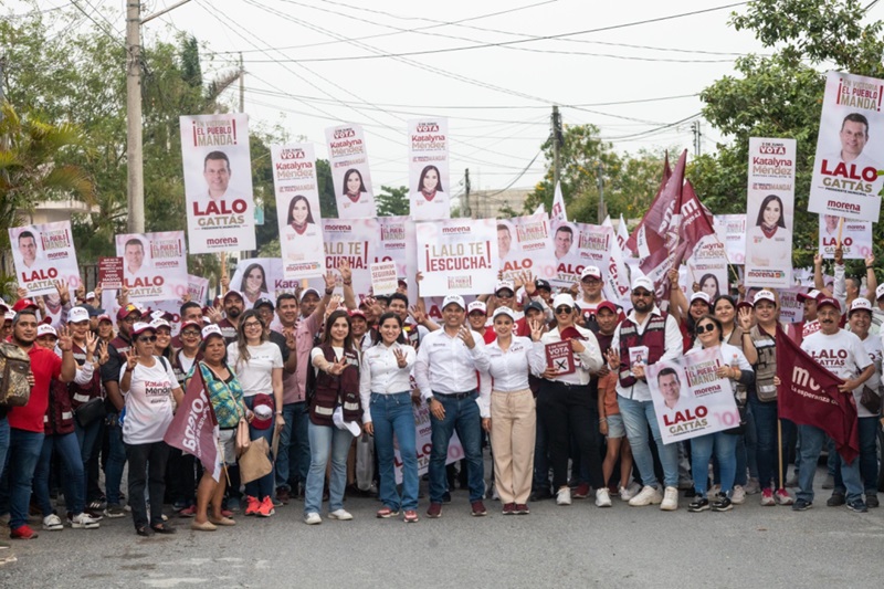 Katalyna Méndez acompañó en el recorrido al candidato de Morena a la alcaldía de Victoria, Lalo Gattás, a quien se sumó para invitar a las familias victorenses a salir a votar el próximo dos de junio de manera masiva en favor de los candidatos del partido guinda, para consolidar la transformación de la capital y de Tamaulipas.