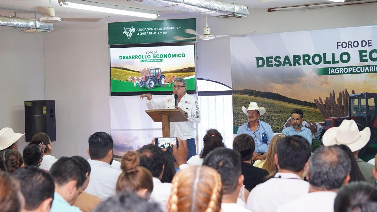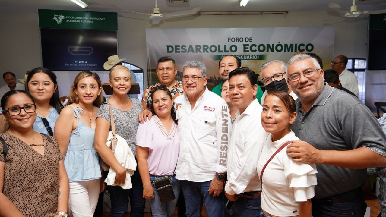 ALTAMIRA, TAMPS. El candidato a la presidencia municipal de Altamira por la coalición “Sigamos Haciendo Historia”, Dr. Armando Martínez Manríquez, fue invitado a participar en el 1er Foro de Desarrollo Económico Agropecuario, organizado por la Asociación Local Ganadera y Lechera de la urbe industrial, encuentro en el que el candidato abordó los riesgos y oportunidades de este vital sector.