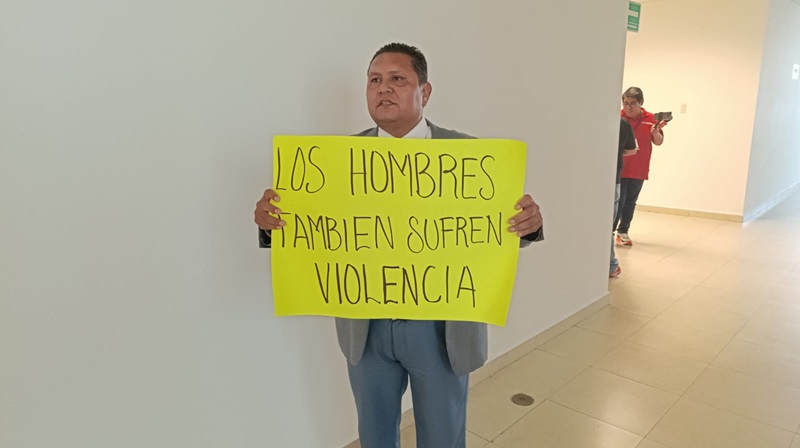 Uno de los mensajes que portaba el legislador era «los hombres también sufren violencia» pero dijo que como les da vergüenza, en la mayoría de las ocasiones no se denuncia.