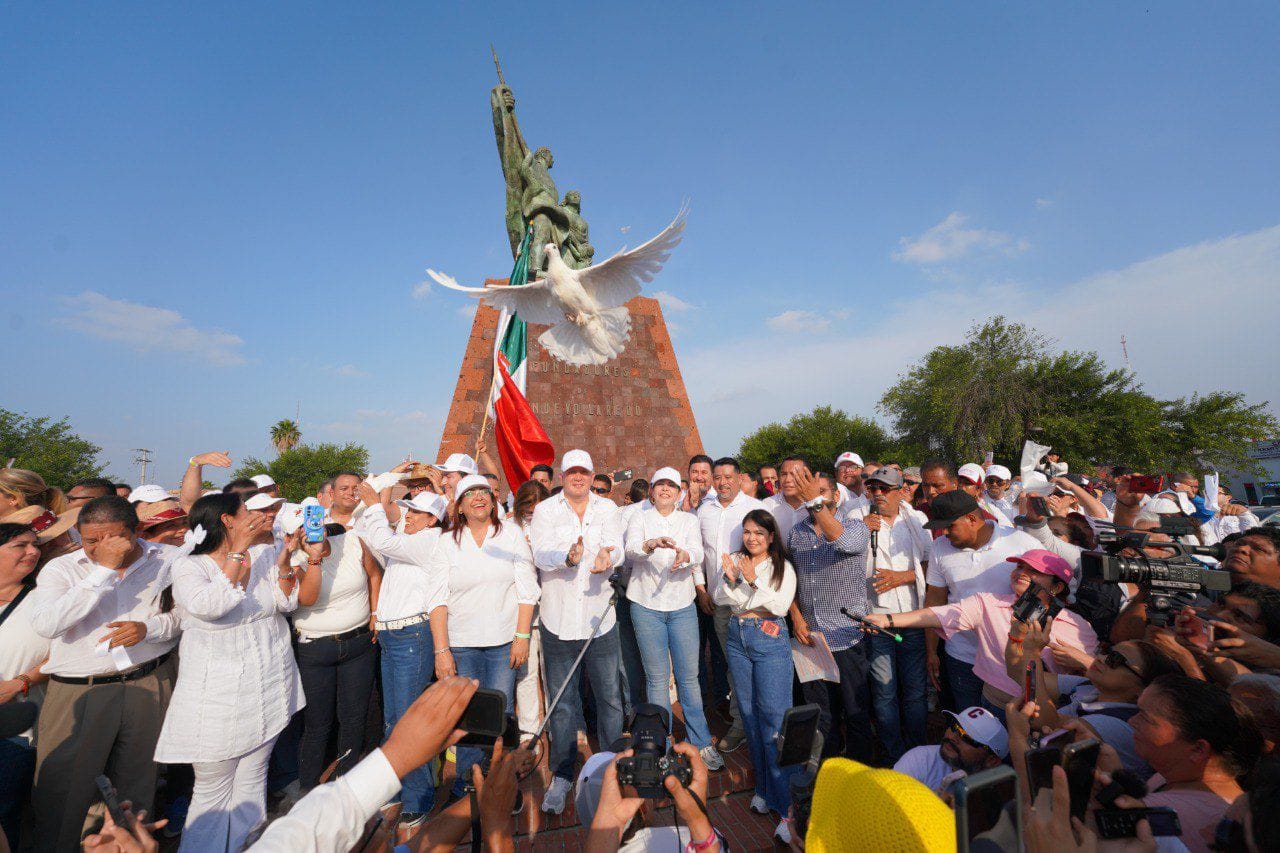 Al finalizar en un emotivo acto la candidata a la alcaldía de Nuevo Laredo, Carmen Lilia Canturosas Villarreal acompañada de los ciudadanos soltó unas palomas de color blanco como acto de unidad.