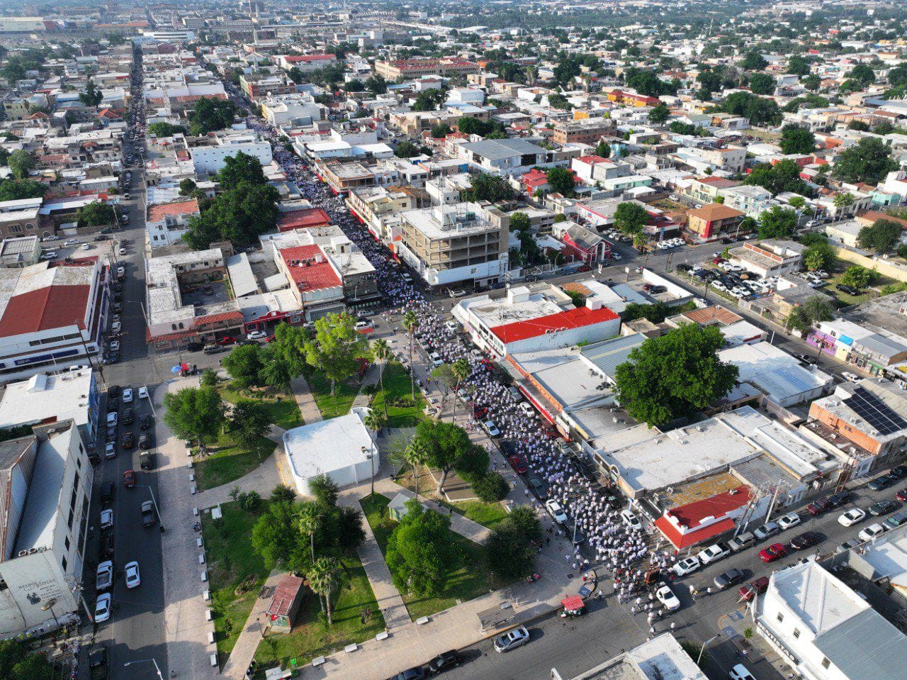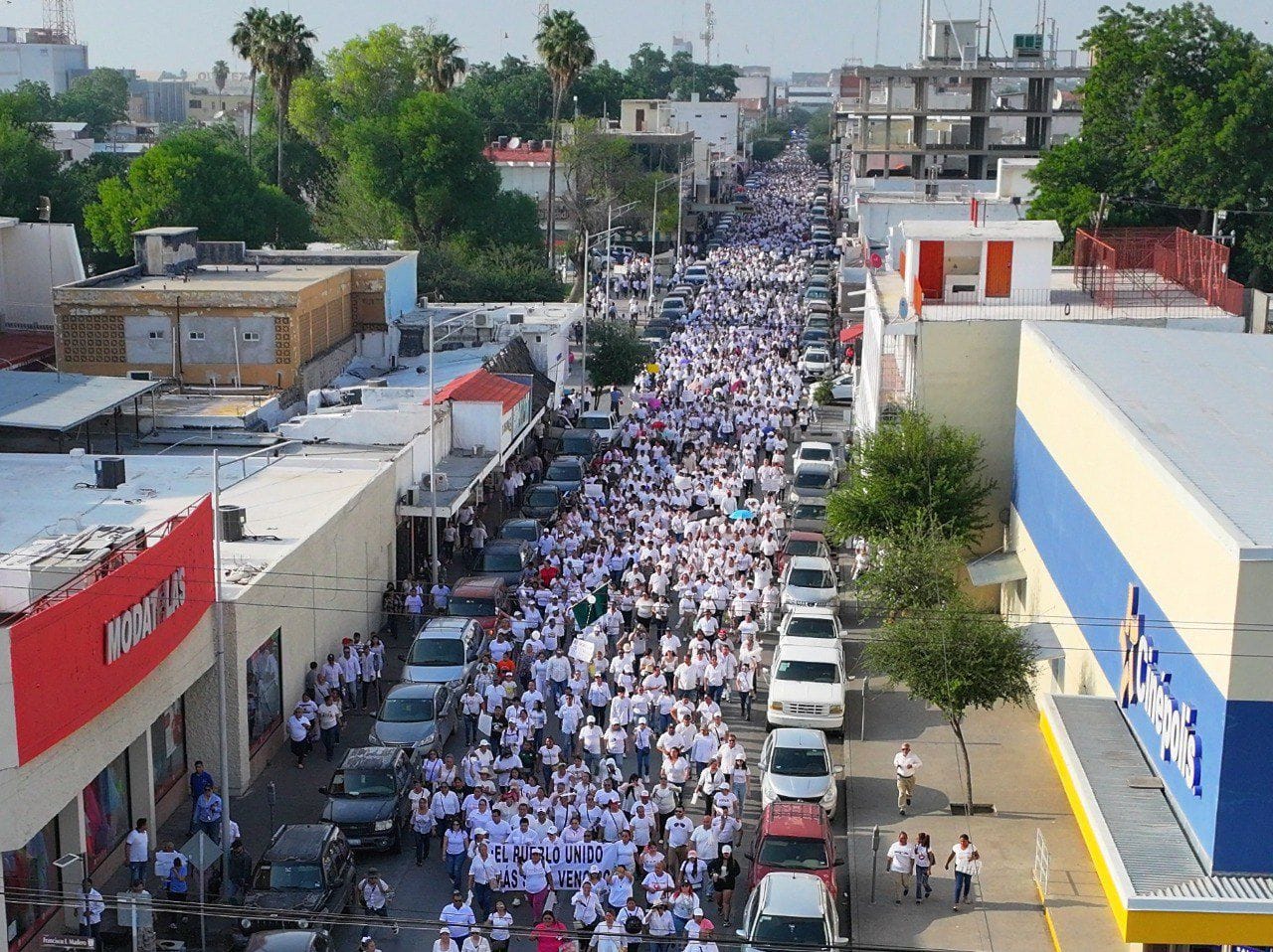 NUEVO LAREDO, TAMPS. Más de 15 mil personas se unieron a la marcha pacífica por la democracia convocada por Carmen Lilia Canturosas Villarreal, candidata a presidenta municipal de la coalición Morena, Verde Ecologista y PT para que se lleve a cabo una proceso electoral de altura sin guerra sucia y que se respete la decisión de los ciudadanos.Desde la plaza Miguel Hidalgo con vestimenta en color blanco miles de ciudadanos, entre líderes empresariales, religiosos, integrantes de asociaciones civiles, maestros, jóvenes, amas de casa, trabajadores entre otros se dirigieron al monumento a Los Fundadores junto a la candidata Carmen Lilia quien exhortó a la población a ser libres de participar democráticamente este 2 de junio.