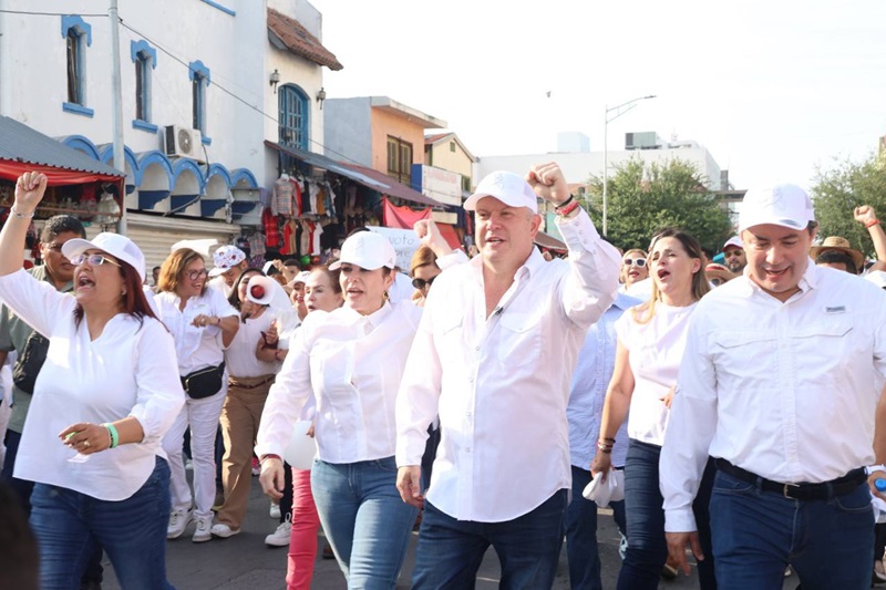 NUEVO LAREDO, TAMPS. Más de 15 mil ciudadanos abarrotaron seis cuadras de la avenida Guerrero para sumarse a una marcha pacífica por la democracia en la que junto a los candidatos de MORENA, PT y PVEM, Carmen Lilia Canturosas Villarreal y Carlos Canturosas Villarreal alzaron la voz para pedir un proceso electoral libre y sin guerra sucia.