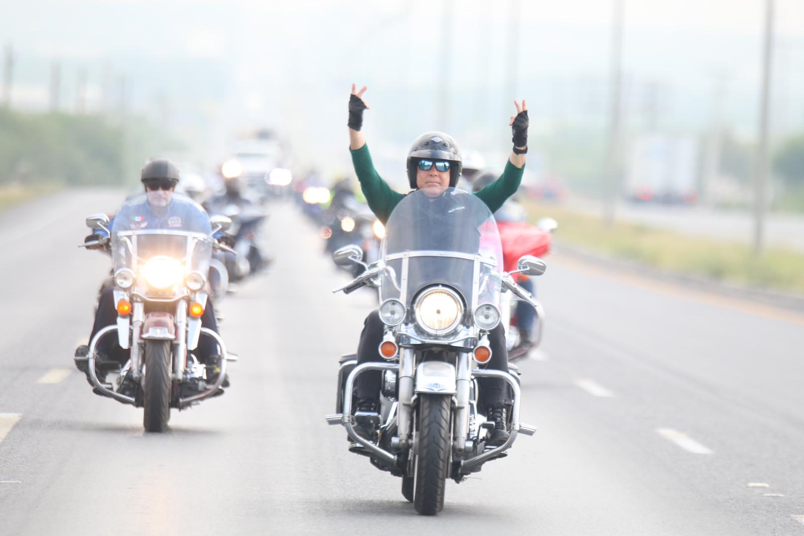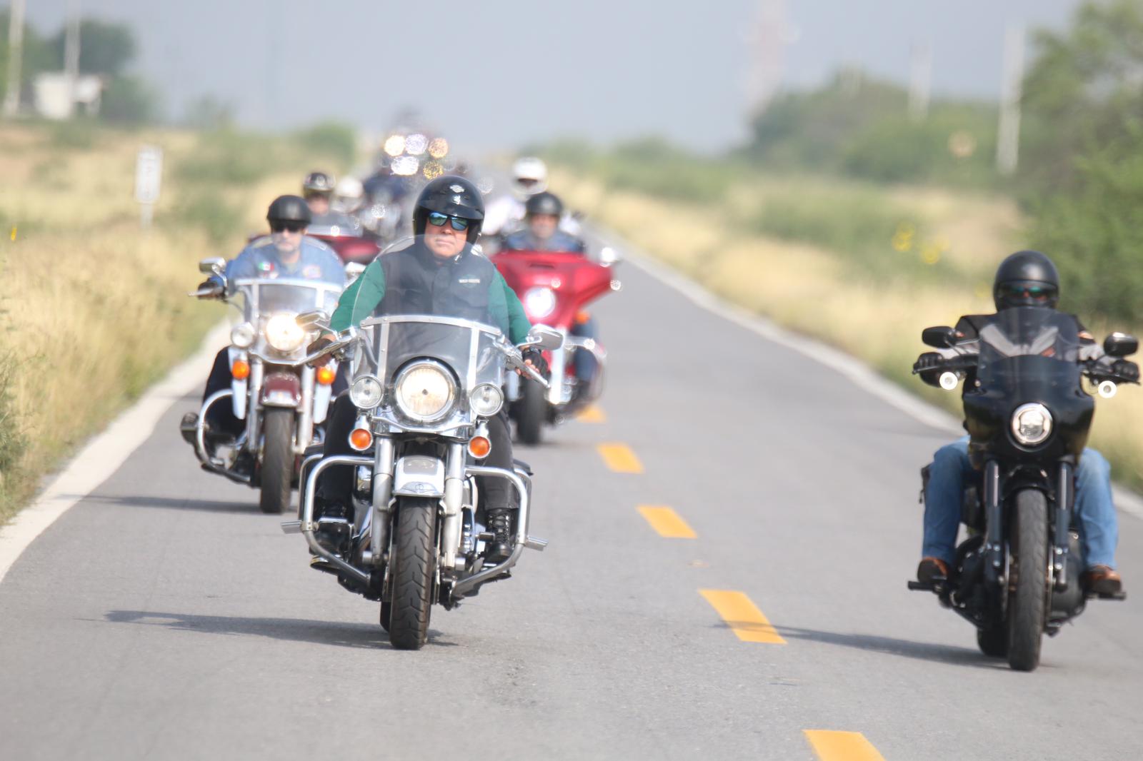 CIUDAD MIER, TAMPS. Vestidos con trajes de cuero, botas, chalecos con insignias de distintos motoclubes, casco y montados en moto, amigos de Eugenio «Geño» Hernández Flores, Candidato del Partido Verde al Senado, recorrieron junto a él la Frontera Grande desde Nuevo Laredo hasta Ciudad Mier, pasando por Nueva Ciudad Guerrero.