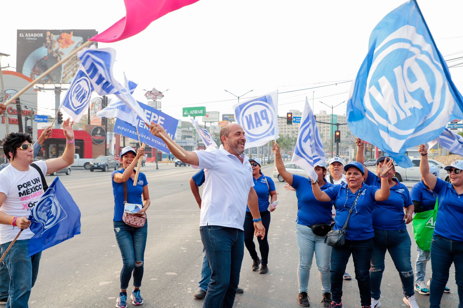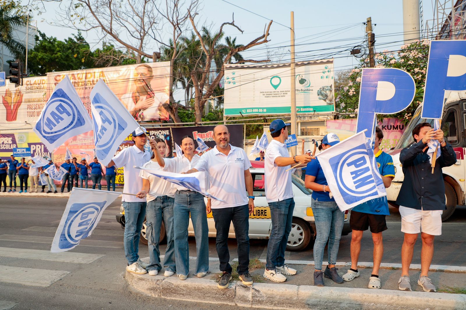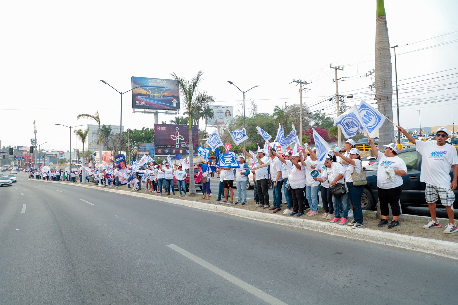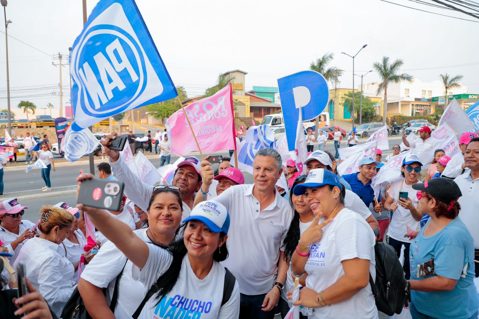 TAMPICO, TAMPS. Un gran ambiente se vivió este domingo en la prolongación de la avenida Hidalgo, con el espectacular bandereo a cargo de cientos de simpatizantes del Partido Acción Nacional y del Revolucionario Institucional que invitaron a la ciudadanía a seguir por el camino de la seguridad y el desarrollo con Rosa González Azcárraga en la Presidencia municipal de Tampico.
