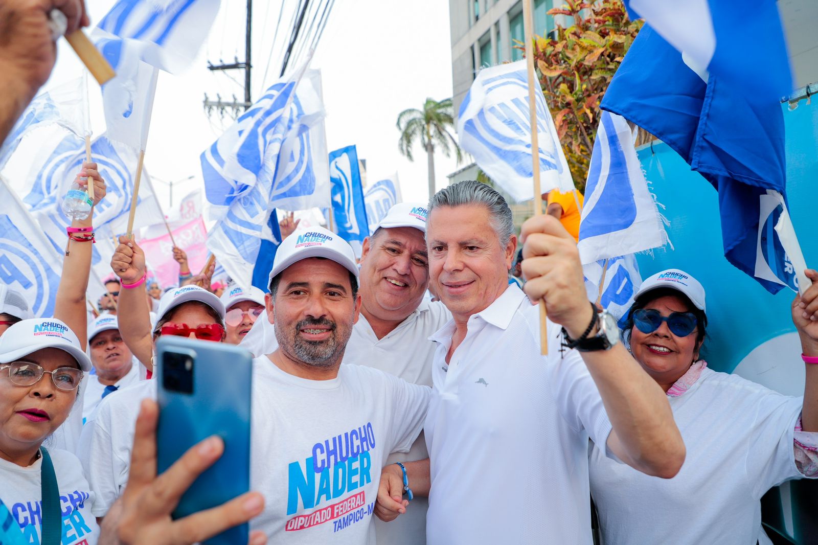 A la alegre muestra de simpatía al único proyecto que garantiza continuidad en la transformación de la ciudad, se integraron los propios candidatos de la Alianza «Fuerza y Corazón por Tamaulipas», Rosa González, Pepe Schekaibán, Marcela Unda y Chucho Nader.