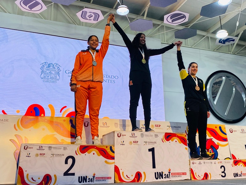 Natalia Monserrat Sarmiento Rodríguez, alumna de la Unidad Académica de Trabajo Social y Ciencias para el Desarrollo Humano, conquistó la segunda presea para la UAT en esta edición 26 de la máxima justa deportiva universitaria del país.