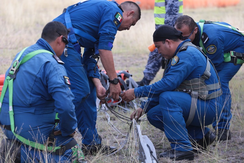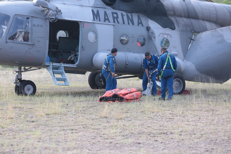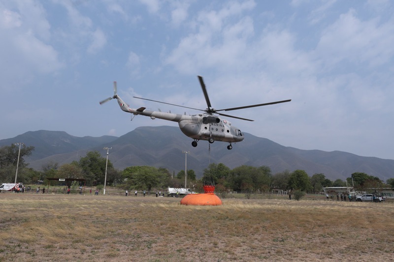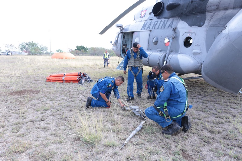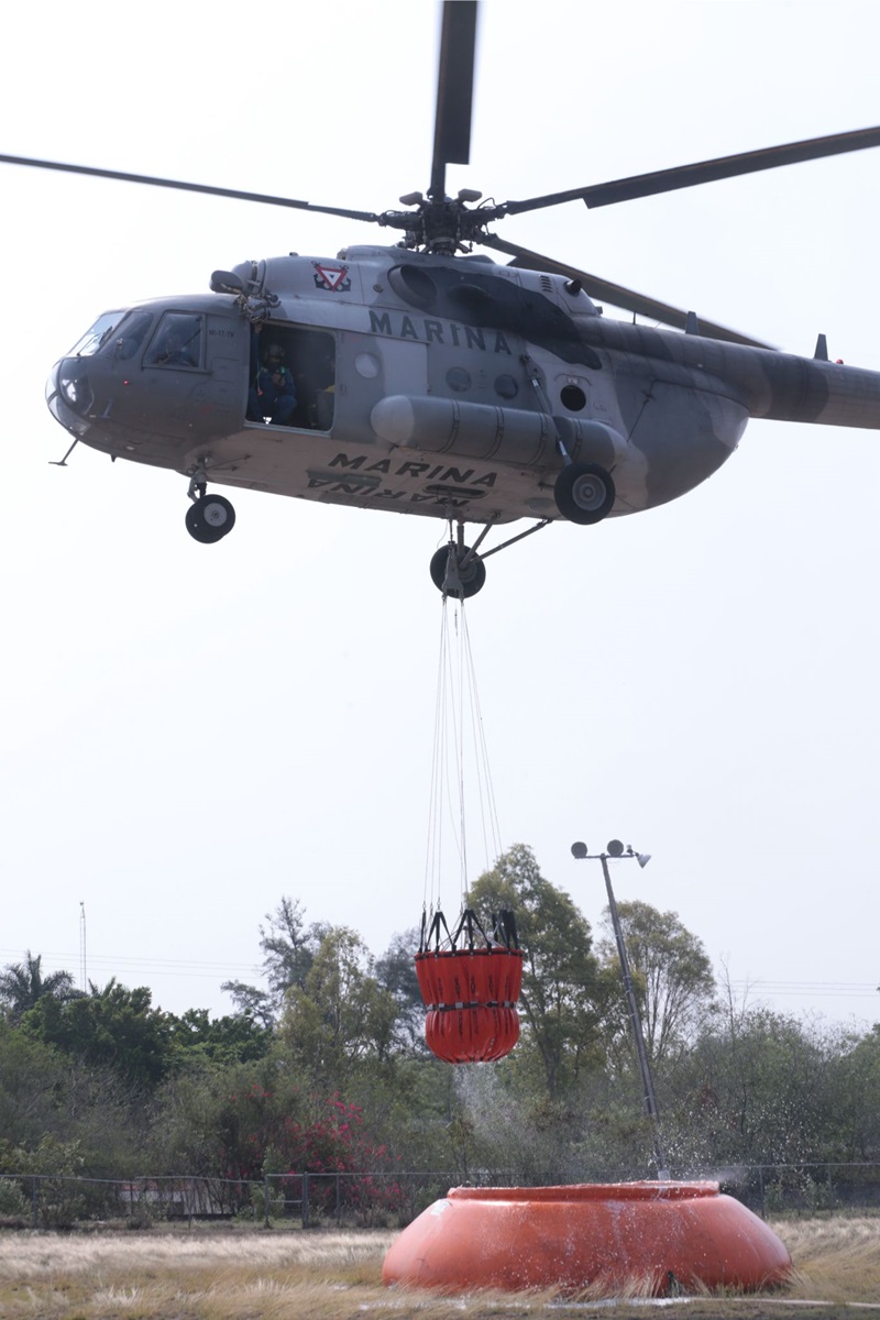 A las 8.30 horas de este martes la aeronave aterrizó en la Villa Olímpica de Tamatán en donde el equipo enviado por la SEMAR realizó las primeras maniobras para cargar el helibalde, el cual fue abastecido por pipas de la Comisión Municipal de Agua Potable.