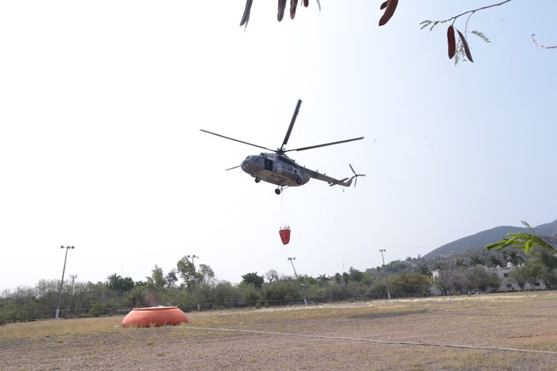 Inicia helicóptero de SEMAR combate a incendio en Cañón del Novillo