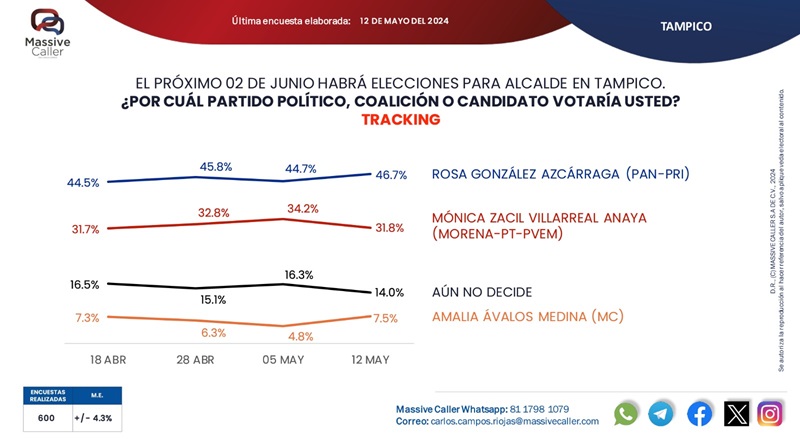 En la reunión a la que asistió también Chucho Nader, Candidato a la Diputación Federal por el Octavo Distrito y los aspirantes al Congreso tamaulipeco, Marcela Unda y Pepe Schekaibán, Rosa González mencionó que en cada recorrido constatan la aprobación y convencimiento ciudadano para que Tampico siga transitando por la ruta del progreso y la seguridad.