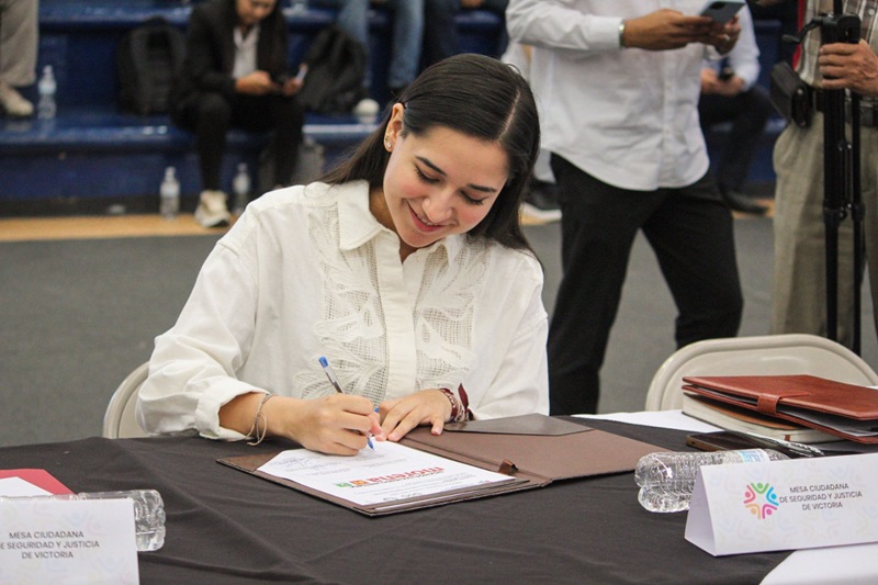 La candidata de la coalición ‘Sigamos Haciendo Historia en Tamaulipas’, conformada por Morena, Partido Verde de México y Partido del Trabajo, firmó junto a sus compañeros de fórmula, Lalo Gattás para la alcaldía y Blanca Anzaldúa Nájera para la Diputación Local por el Distrito 14, la Agenda de Seguridad Pública propuesta por la Mesa Ciudadana de Seguridad y Justicia de Victoria.