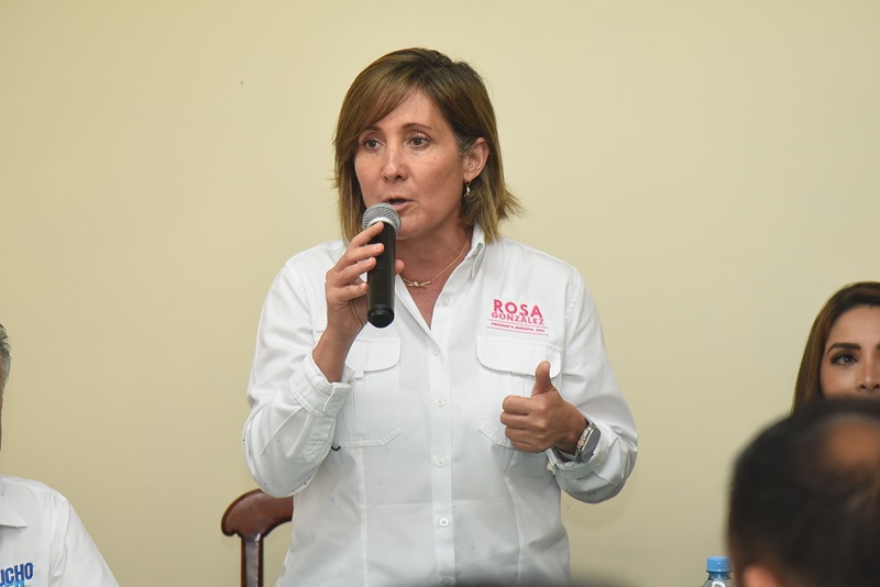 Rosa González, acompañada de Chucho Nader, candidato a la Diputación Federal por el Octavo Distrito; y los aspirantes al Congreso local por los Distritos 21 y 22, Marcela Unda y Pepe Schekaibán respectivamente, expuso que durante su administración habrá continuidad en materia de obra pública, seguridad, servicios públicos; y desarrollo turístico y urbano para seguir fortaleciendo la actividad económica de todos los comerciantes.