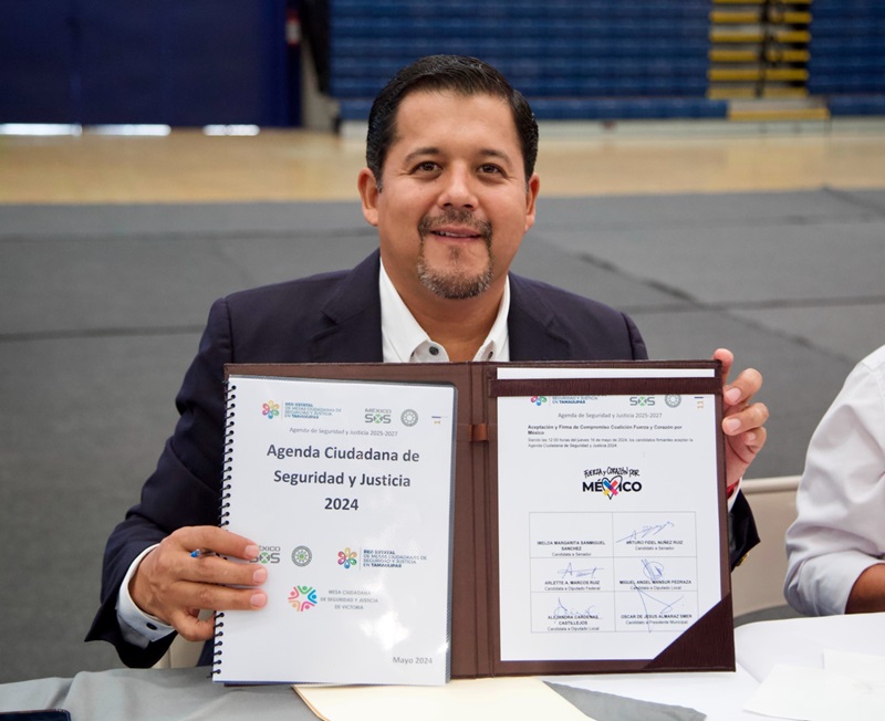 Al firmar la Agenda Ciudadana para la Seguridad y Justicia de Ciudad Victoria, el candidato al Senado de la Coalición ‘Fuerza y Corazón por México‘ dijo que para hablar de este tema es necesario pensar en un desarrollo integral, ya que no solo se trata de capacitar policías, sino de trabajar en equipo los tres órdenes de gobierno.