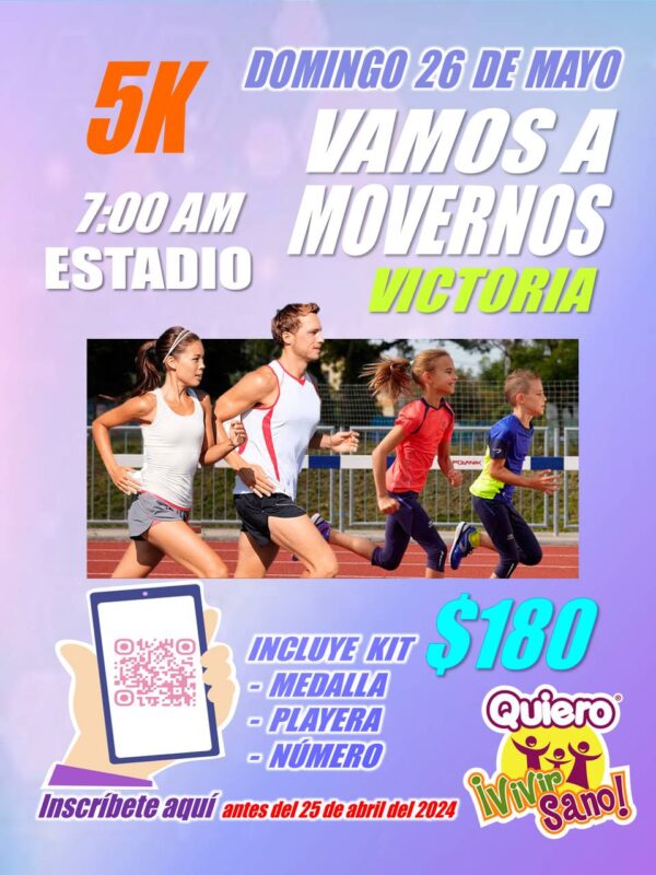 Recuerda diviértete, convive y mejora tu salud, participando en la Carrera “Vamos a Movernos” de la Iglesia Adventista del Séptimo Día en Ciudad Victoria.
