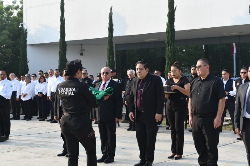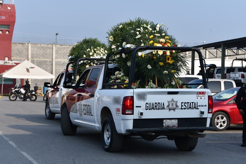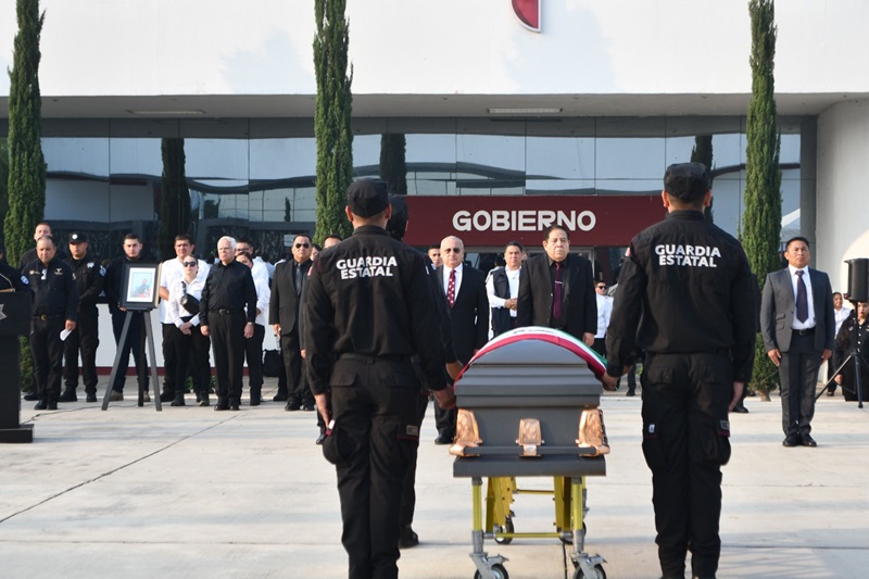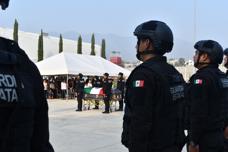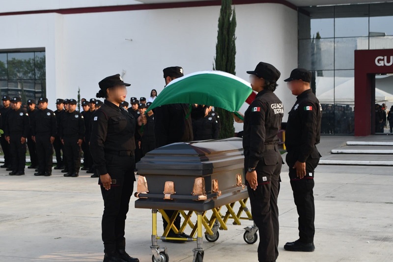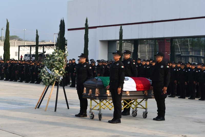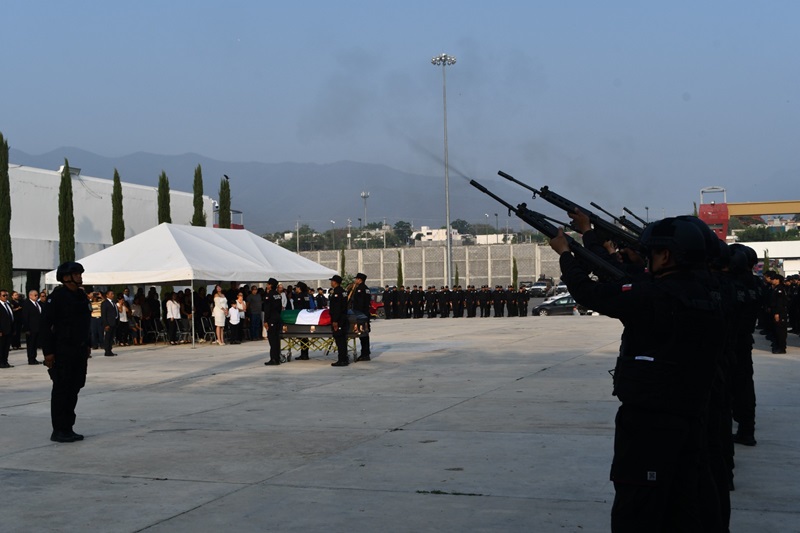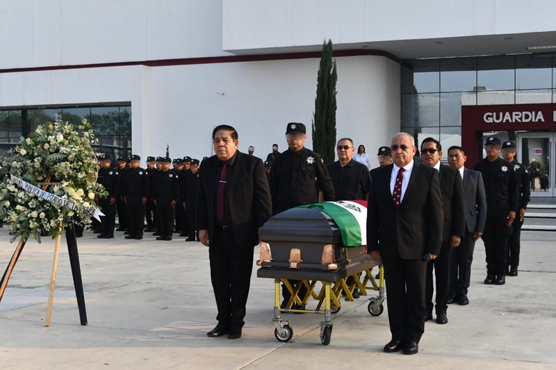 En su último acto de servicio, se realizó el pase de lista correspondiente, así como una salva y una guardia de honor encabezada por el titular de la SSPT, quien entregó la bandera a los deudos en señal de respeto y reiteró el respaldo y apoyo de la Secretaria en todo lo que requieran.