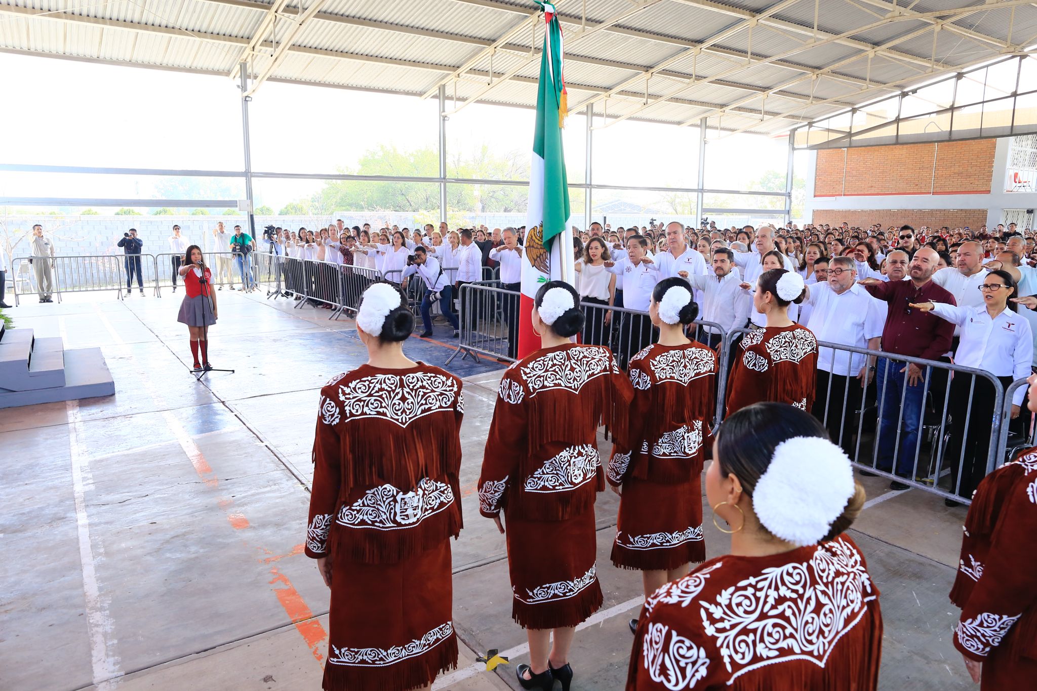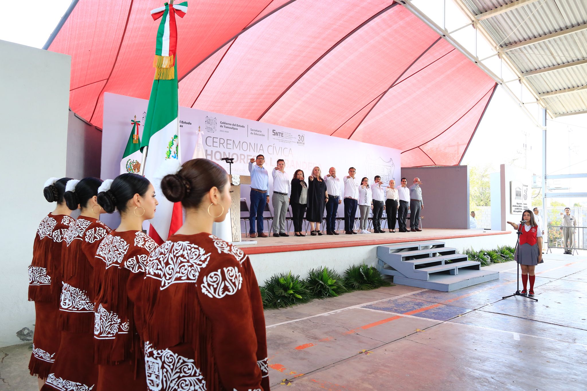 Al presidir la ceremonia cívica de honores en la escuela Normal Federal de Educadoras «Estefanía Castañeda» y tras emotivo recibimiento por parte de la directora Albertina Guadalupe Guajardo Villela, el gobernador afirmó que las jóvenes estudiantes de este plantel son un pilar de la educación en la entidad.