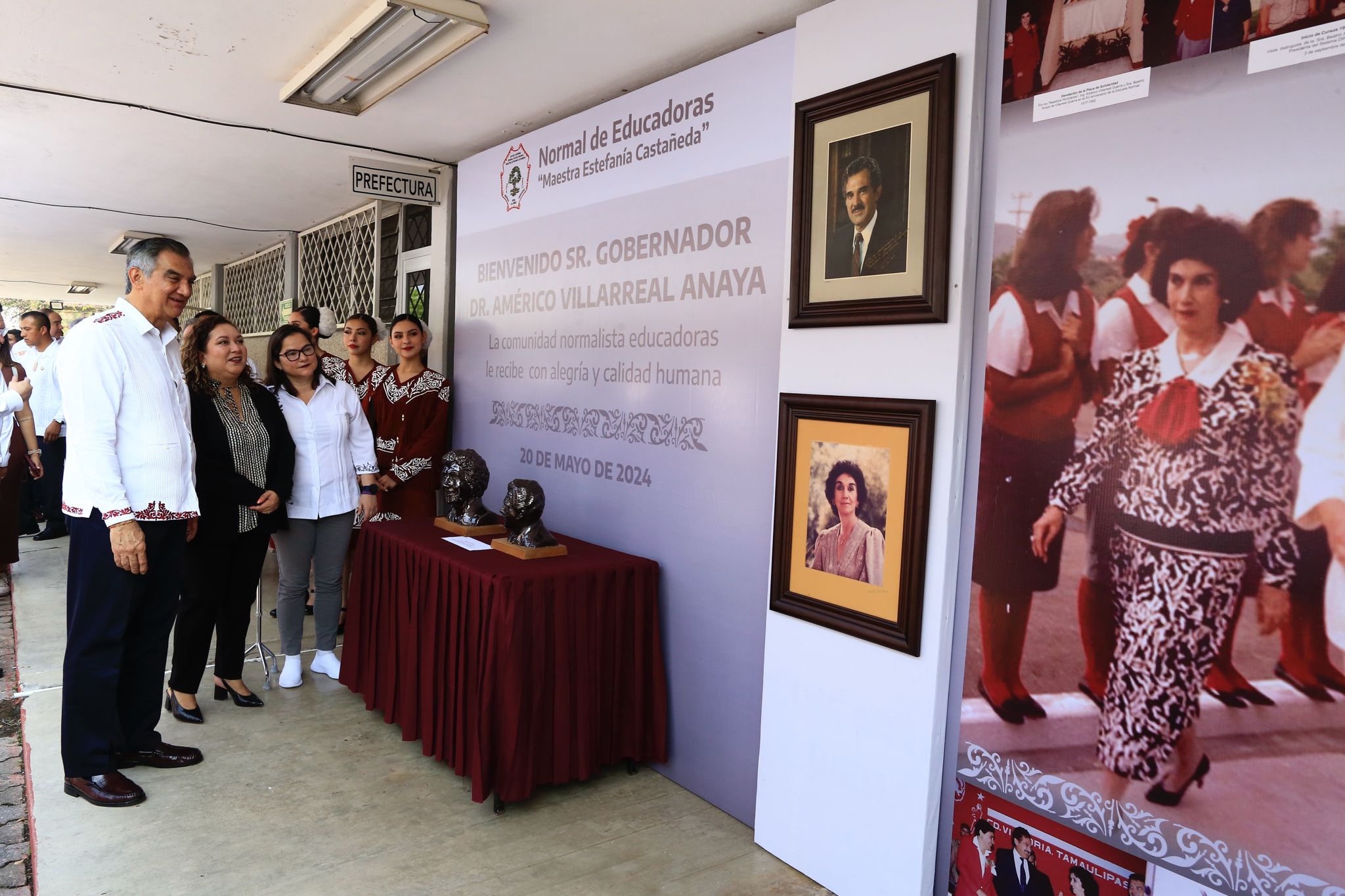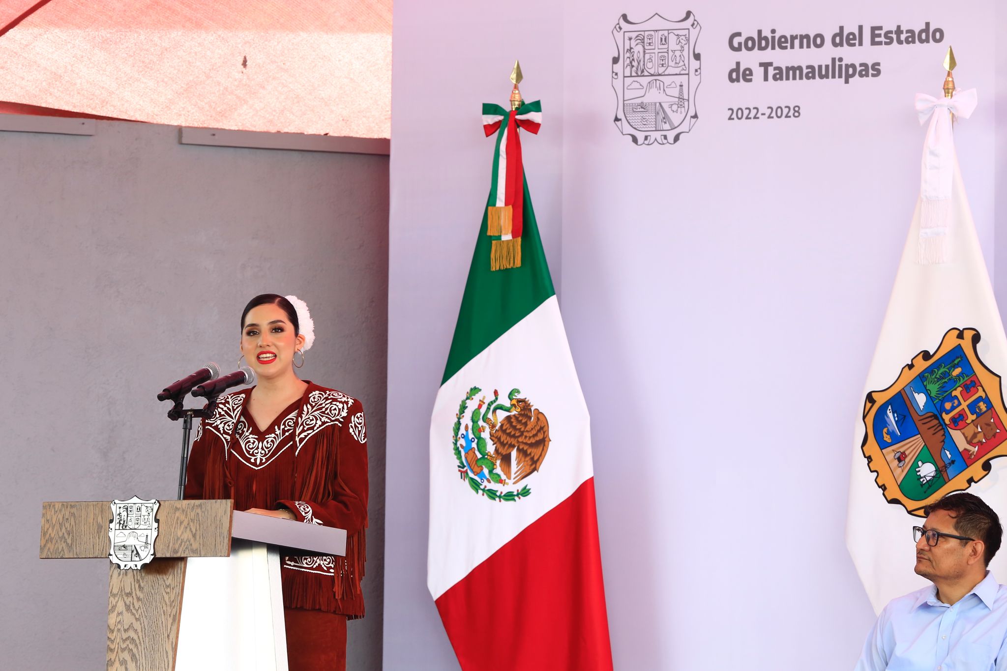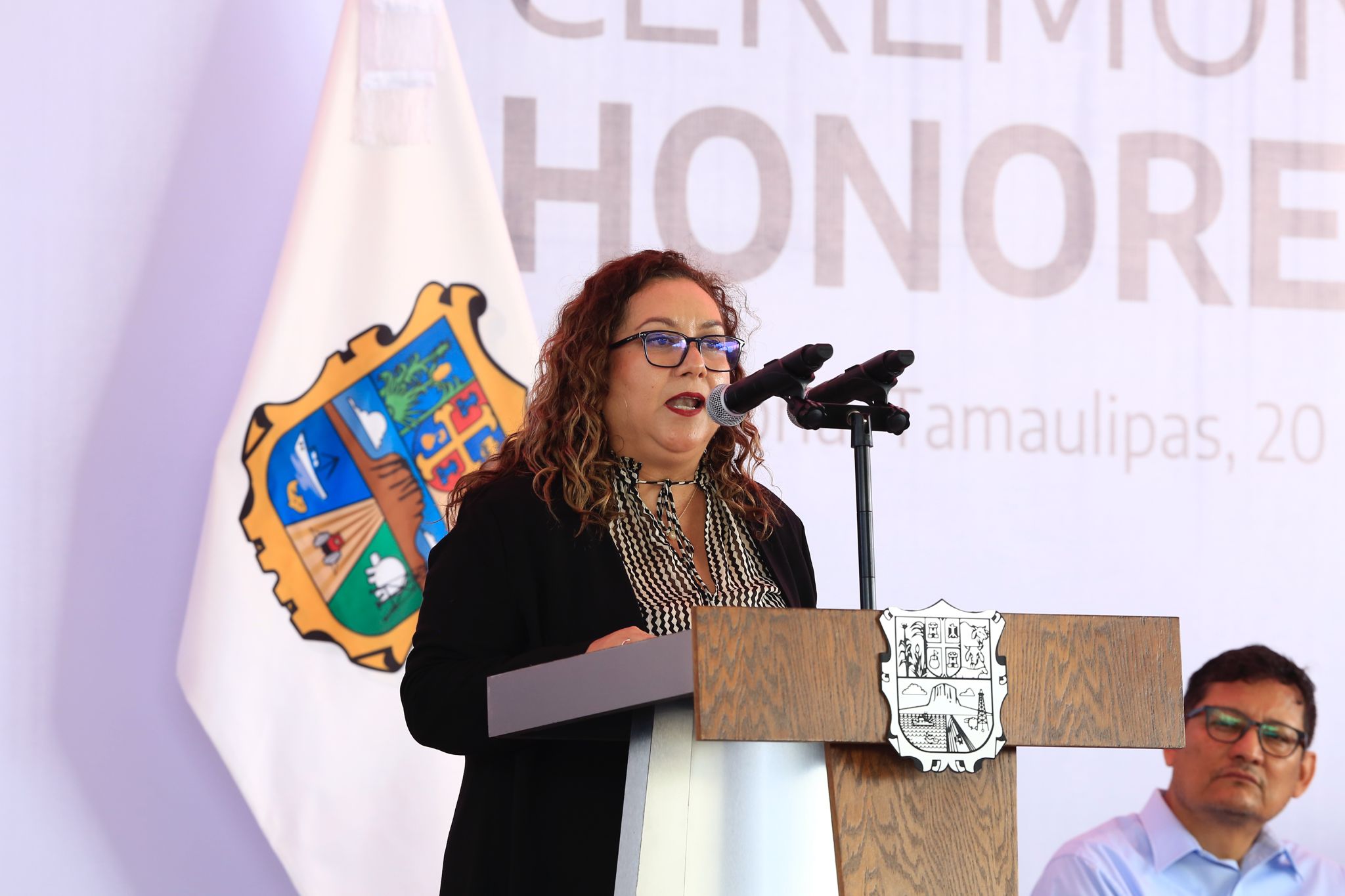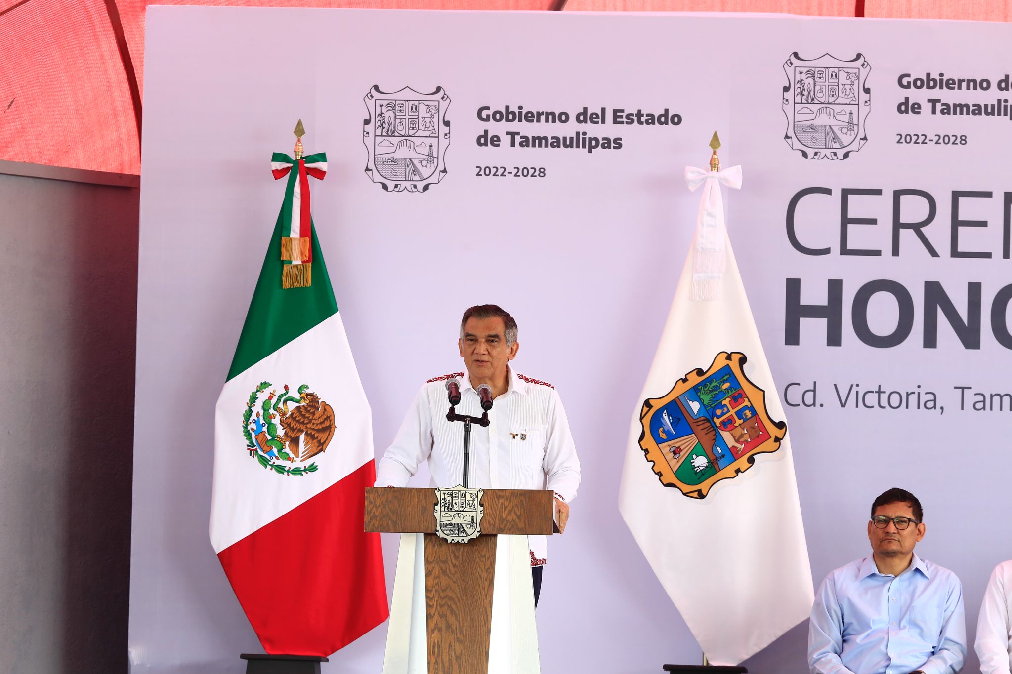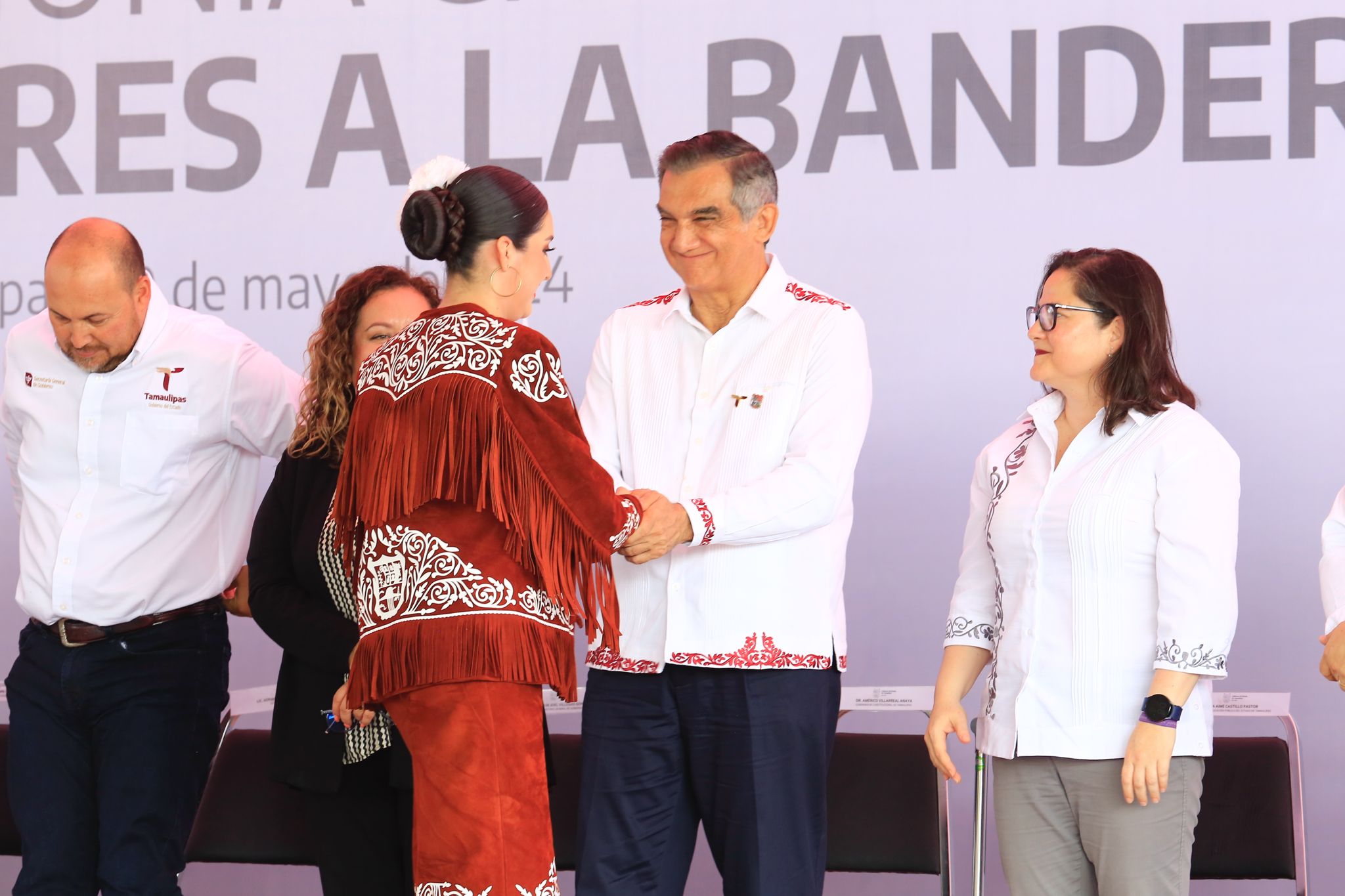 En la ceremonia también acompañaron al gobernador: David Cerda Zúñiga, presidente del Supremo Tribunal de Justicia; Héctor Joel Villegas González, secretario general de Gobierno; Lucía Aimé Castillo Pastor, secretaria de Educación; Dámaso Anaya Alvarado, rector de la Universidad Autónoma de Tamaulipas; Adriana Lozano Rodríguez, secretaria de Finanzas; Pedro Cepeda Anaya, secretario de Obras Públicas; el diputado Juan Román Vital, presidente de la Comisión de Educación del Congreso; la titular de la Oficina de Enlace de la SEP, Nora Hilda De los Reyes y Hugo Alberto Galván Ibarra, presidente municipal en funciones de Victoria.