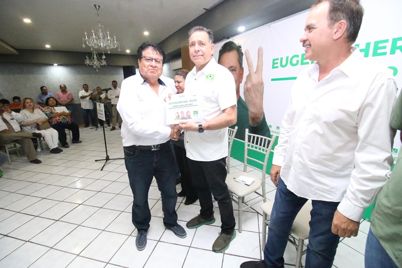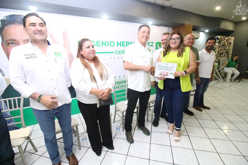 VALLE HERMOSO, TAMPS. Durante la entrega de nombramientos a la estructura electoral del Partido Verde en Valle Hermoso, el candidato al Senado, Eugenio «Geño» Hernández Flores, pidió al ejército defensores del voto «no permitir que nadie altere los resultados que el pueblo decida el próximo 2 de junio«.