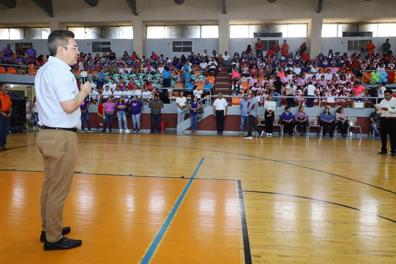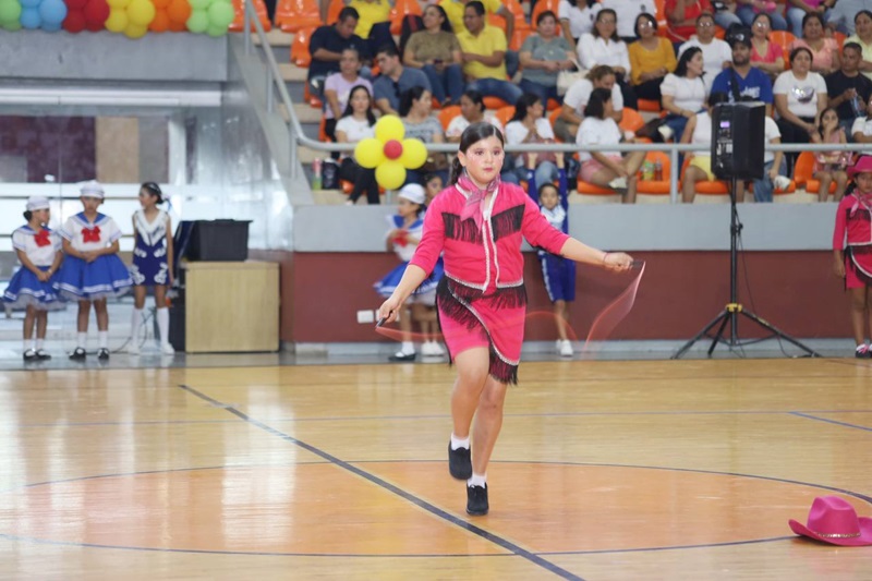 El gimnasio de la Unidad Deportiva Siglo XXI fue escenario del colorido y majestuoso evento, en el que derrocharon talento, coordinación y esfuerzo físico alumnas y alumnos de 35 escuelas de diez municipios de la zona centro del Estado con espectaculares coreografías sobre la duela que disfrutaron cientos de padres de familia.