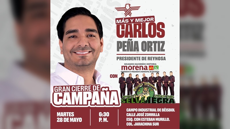REYNOSA, TAMPS. Se invita a la ciudadanía a acompañar al candidato a la presidencia municipal de Reynosa, Carlos Peña Ortiz.