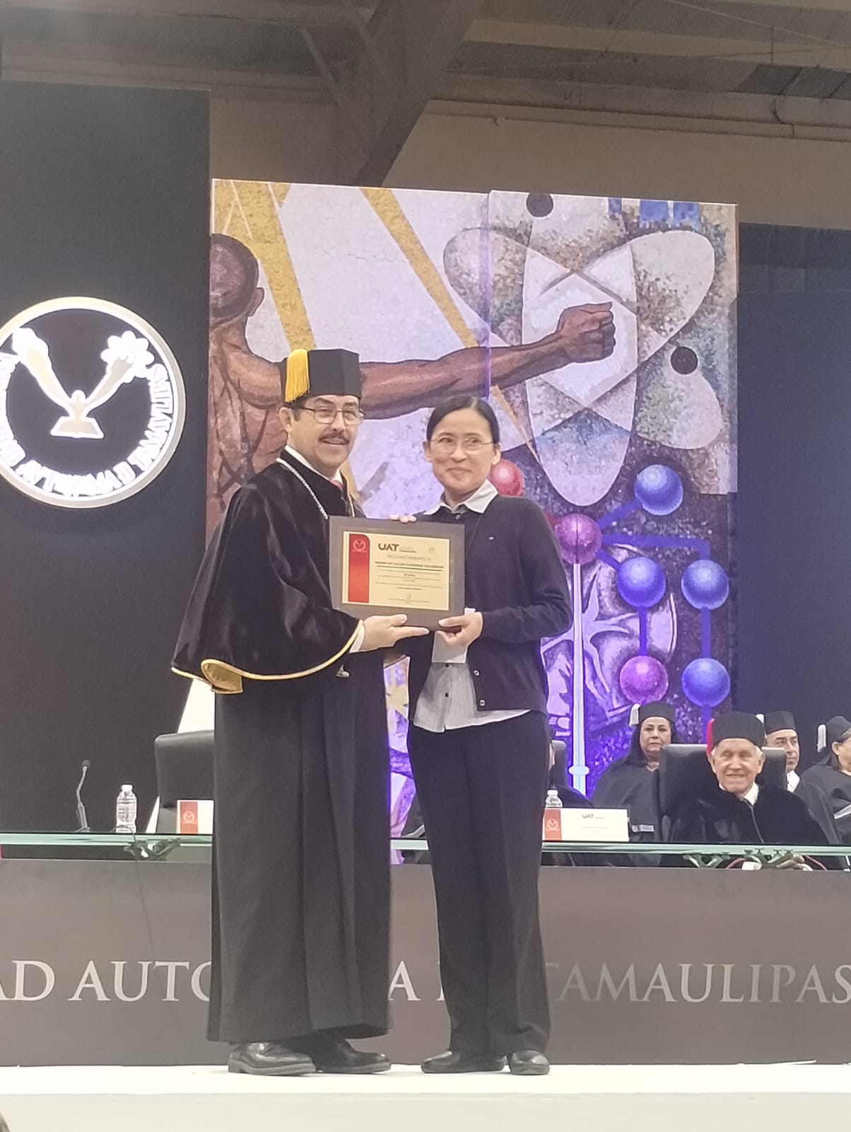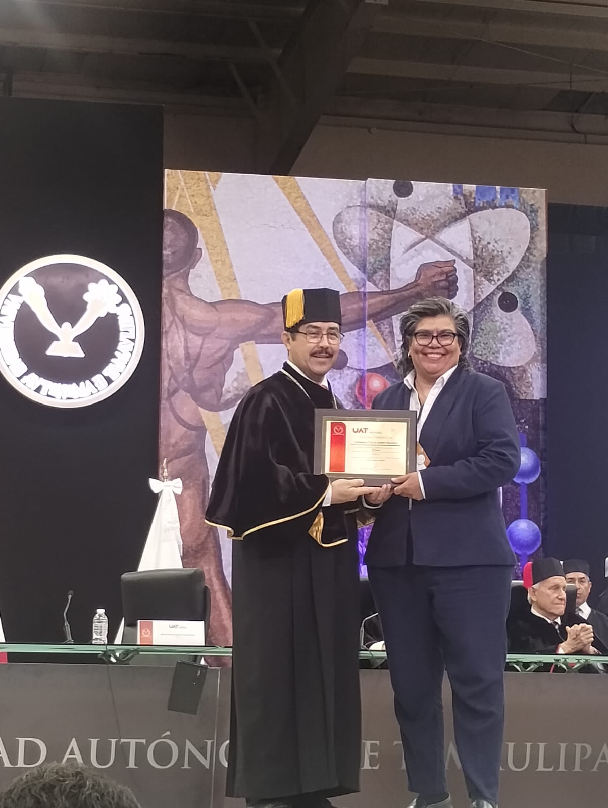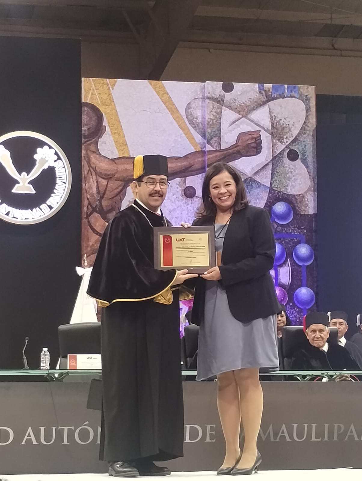 En la ceremonia destacaron el Dr. Augusto Federico González Graciano, la Mtra. Mayra Mayela Ramírez Gómez, el Dr. Roberto Zúñiga Arias, y la Dra. Gloria Graciela Reyna Hagelsieb, reconocidos por 15 años de antigüedad al servicio de nuestra querida UAT.
