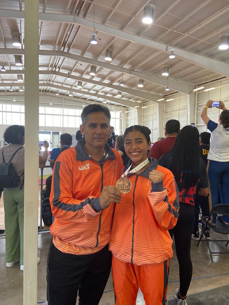 Bajo el mando del sensei Tomás Rodríguez, Laura Zamora, logró la cuarta medalla de bronce para la UAT, en la categoría -50 kilogramos, modalidad Kumite.