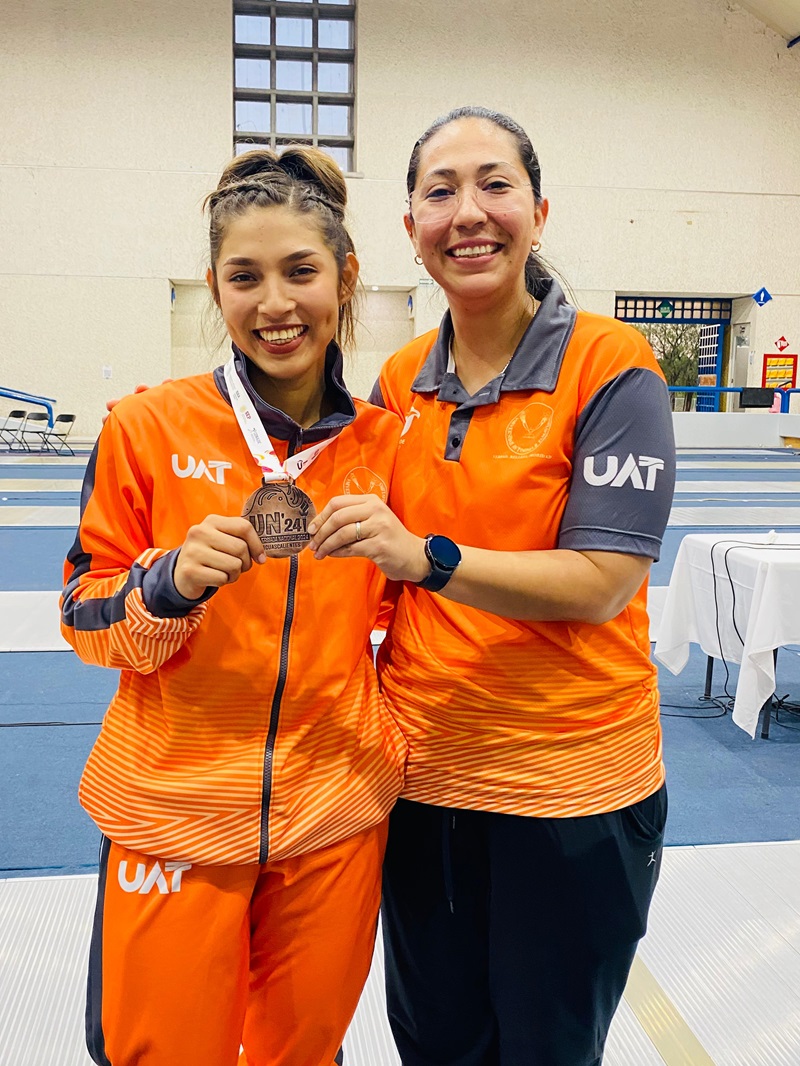 En esta disciplina, al mando de la dos veces olímpica, Úrsula González Gárate, lograron otra presea más, gracias a la actuación de Alejandra Yamile Badillo Varela, de la Unidad Académica de Trabajo Social y Ciencias para el Desarrollo Humano, que colgó el bronce, también en la modalidad de Sable Individual Femenil.