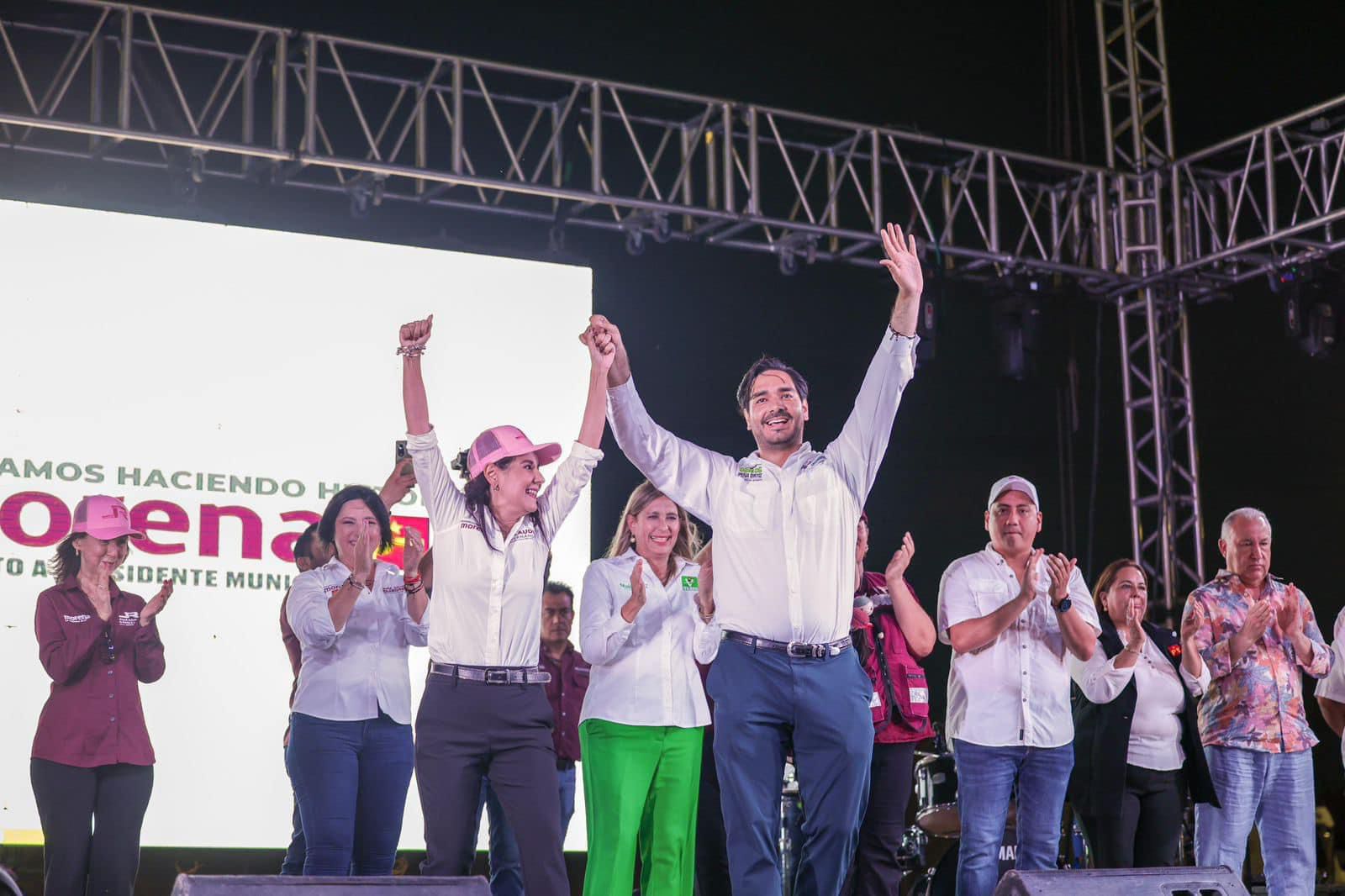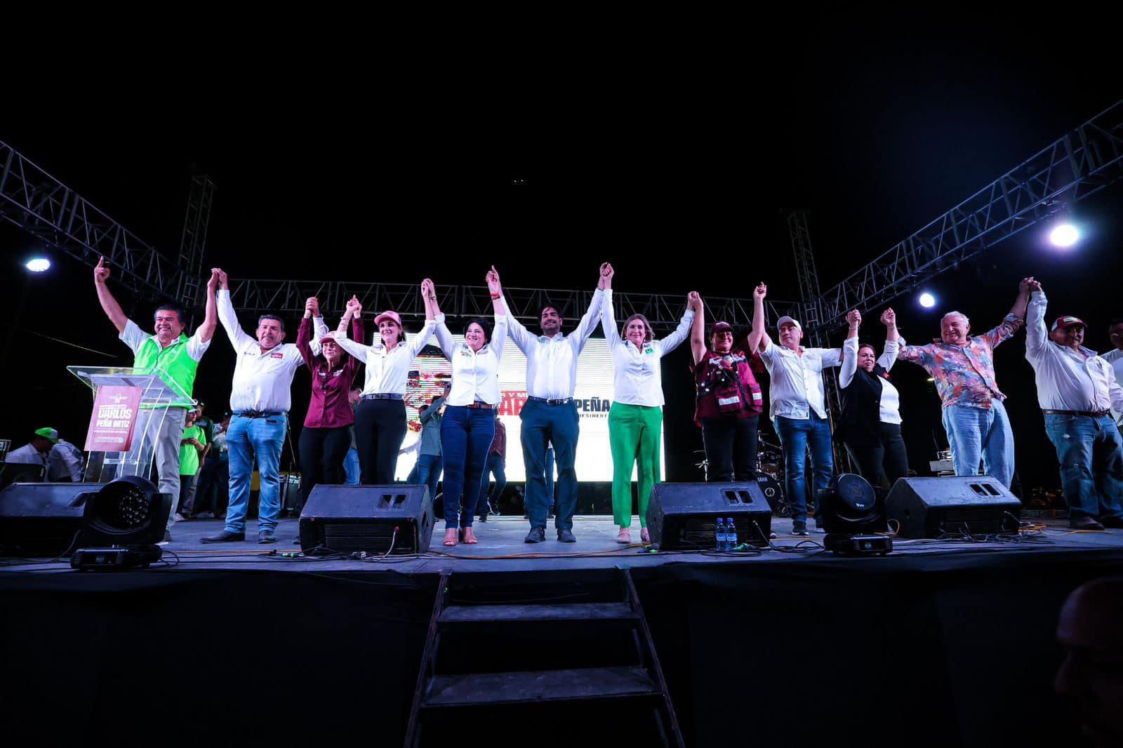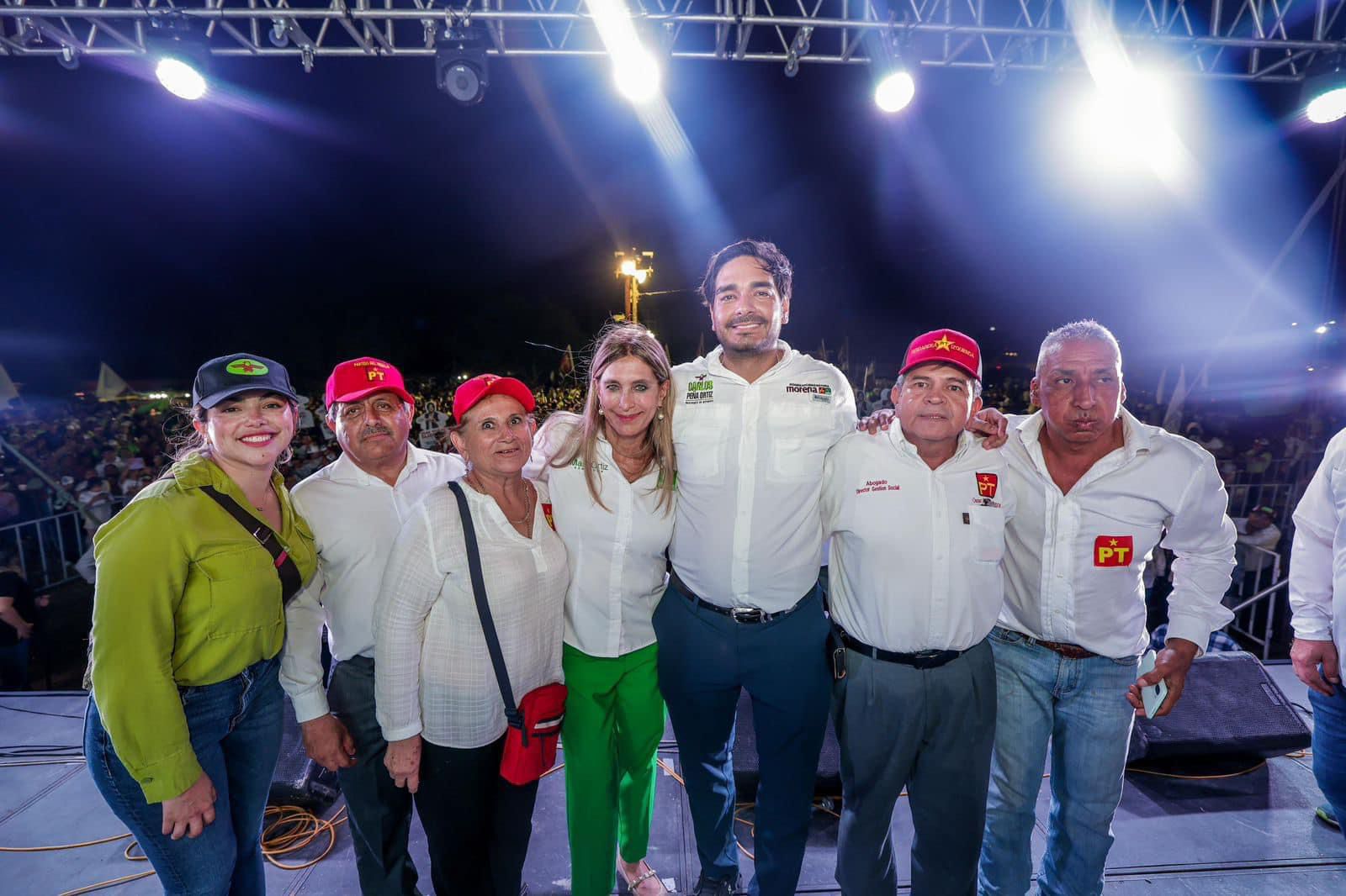 Acompañaron a Carlos Peña Ortiz en este 5⁰ y último cierre de campaña la Dra. Maki Esther Ortiz Domínguez, candidata al Senado de la República por Tamaulipas del Partido Verde Ecologista de México; la Lic. Olga Juliana Elizondo Guerra, candidata a diputada federal del Distrito 7 por la coalición «Sigamos Haciendo Historia» Morena – PT – Verde; la Lic. Claudia Hernández Sáenz, candidata a diputada federal del Distrito 2 por la coalición «Sigamos Haciendo Historia» Morena – PT – Verde; el C. Mauricio Alonso Hernández Gaytán, diputado local del Distrito 6 en Reynosa; la C. Valentina Cota Victoria, secretaria de Mujeres de Morena en Tamaulipas; el Ing. Jorge Santa Ana Castro, dirigente municipal del Partido Verde Ecologista de México en Reynosa; la C. Olalla Yadira Delgadillo Chapa, representante del Partido del Trabajo en Reynosa; el C. Juan Carlos Ballera Rico, secretario general del Sindicato Único de Trabajadores Electricistas de la República Mexicana en Reynosa; el Lic. Jesús Muñoz Flores, en representación del secretario general del Sindicato de Trabajadores Petroleros Sección 36, Lic. Juan Antonio Treviño Vega; el Lic. Héctor Martín Garza González; y la Sra. Graciela Leal de Gómez.