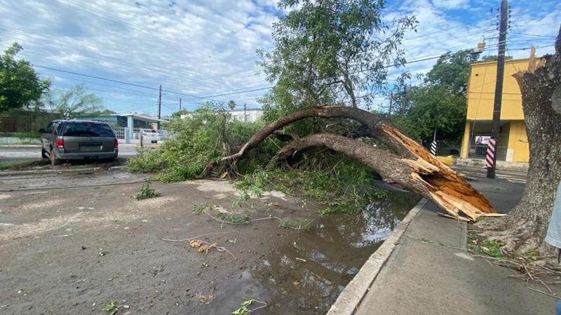 A través de sus redes sociales el gobierno municipal de Nuevo Laredo informó esta mañana que la tormenta también dejó la caída de árboles, por lo que los equipos de Servicios Públicos Primarios, «se encuentran desde temprano con camiones de volteo, retros y personal de la secretaría para realizar labores de limpieza y liberar las vías afectadas por caída de árboles y postes».