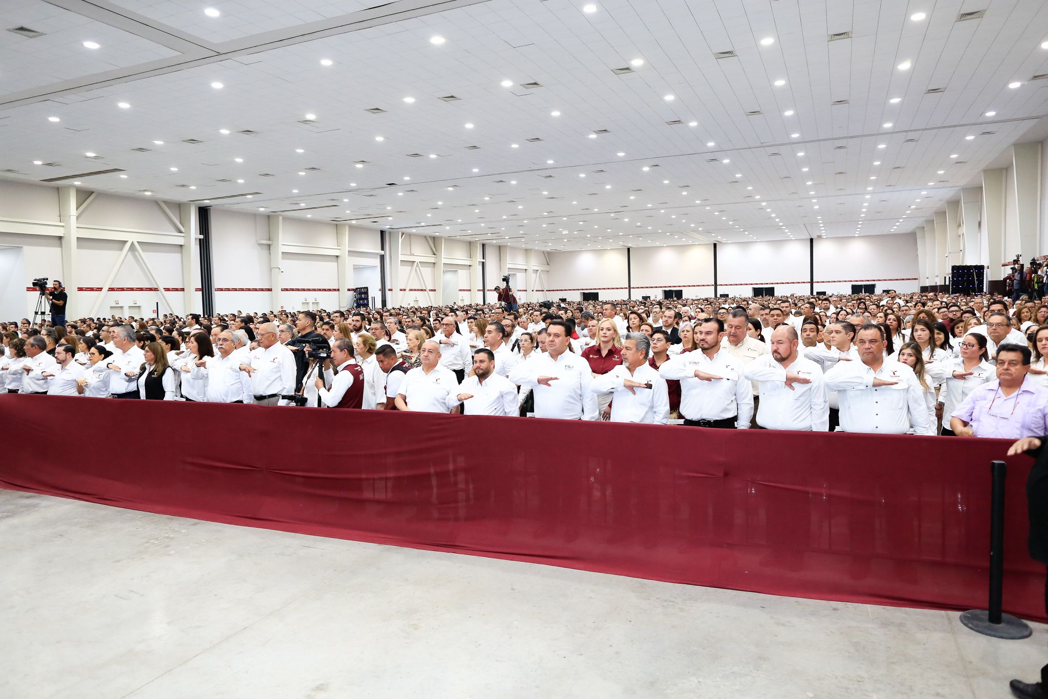 Ante los integrantes del gabinete estatal y la estructura gubernamental en el Polyforum Victoria, informó que la jornada electoral se dio en orden y con civilidad y superó el 57 por ciento de participación, cumpliendo al 100 por ciento la instalación de las mesas de votación.