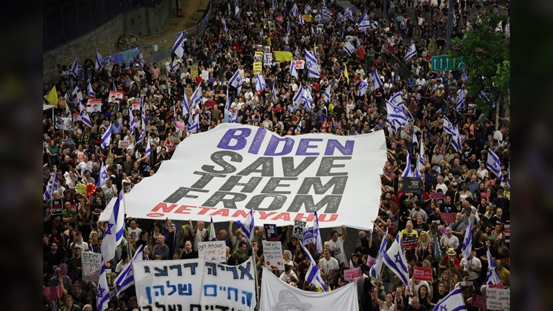 Unas 120 mil personas participaron la noche del sábado en Tel Aviv en la mayor protesta contra Netanyahu desde el 7 de octubre para exigir la adhesión de Israel a la iniciativa difundida por Biden y rescatar cuanto antes a los secuestrados. «¡Deben volver!«, gritaban familiares de los cautivos.
