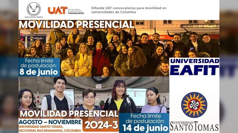CIUDAD VICTORIA, TAMPS. La Universidad Autónoma de Tamaulipas reafirma su compromiso con la internacionalización y el desarrollo integral de sus estudiantes brindándoles oportunidades para ampliar sus horizontes académicos a través de las convocatorias de movilidad internacional disponibles en prestigiosas universidades de Colombia.