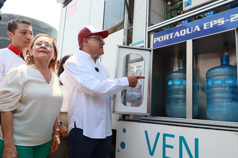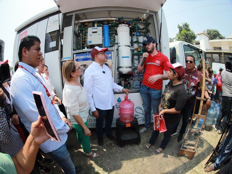 El vehículo, denominado «Ven por Agua», implica una unidad capaz de distribuir hasta 2 mil litros de agua purificada por hora, sumando un total de 48 mil litros diarios.