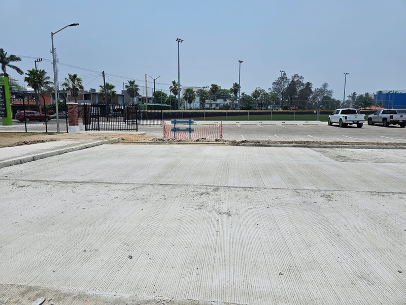 Chucho Nader explicó que los trabajos consisten en la nivelación, conformación y aplicación de pavimento a base de concreto hidráulico en el estacionamiento del acceso sur de la Ciudad Deportiva, justamente donde se ubica el estadio olímpico y el nuevo campo de softbol de pasto sintético.