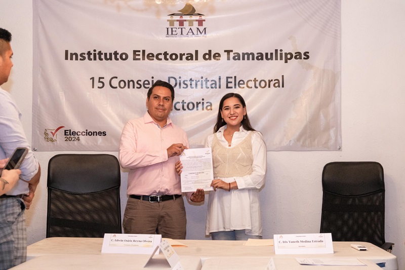 CIUDAD VICTORIA, TAMPS. Katalyna Méndez Cepeda recibió este viernes la constancia de mayoría relativa y validez de la elección como diputada local electa por el Distrito 15, correspondiente a Victoria Sur.