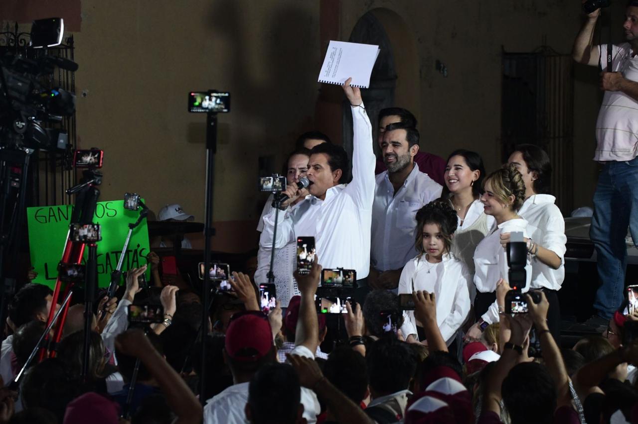 Con una gran fiesta cívica, dónde estuvo acompañado de su esposa Lucy de Gattás e hijos, el activista Américo Villarreal Santiago, la presidenta del partido Yuriria Iturbe, y la diputada electa Katalyna Méndez, celebró el triunfo con su equipo de campaña y militancia que le fue ratificado por el Consejo Electoral Municipal.