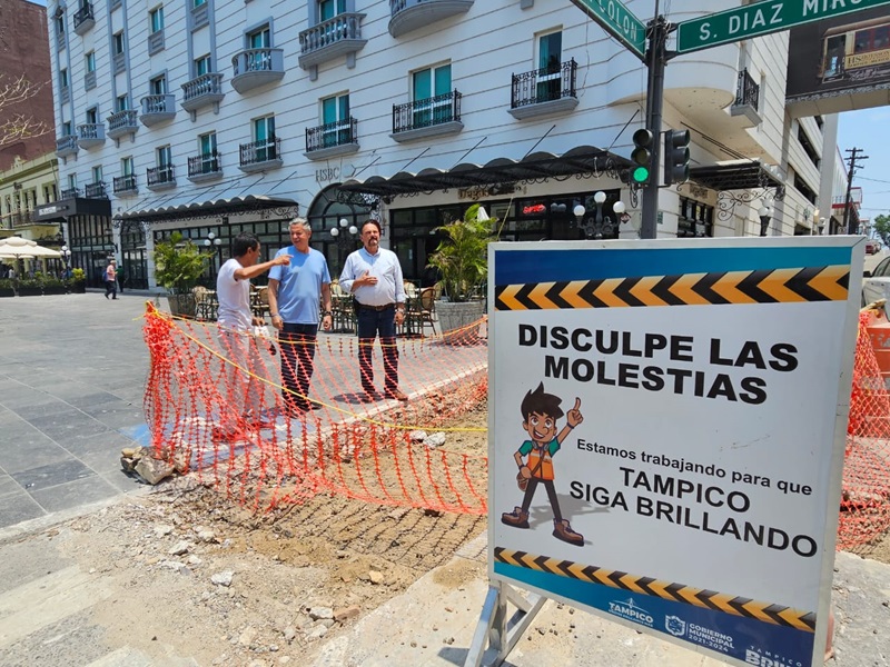 • El Presidente municipal Chucho Nader supervisó este día el avance de los trabajos en la conversión de la calle Salvador Díaz Mirón a vialidad semipeatonal, en el tramo comprendido entre Cristóbal Colón y el acceso al nuevo Museo de la Ciudad en la zona centro de Tampico.