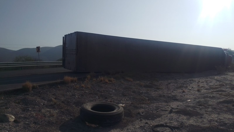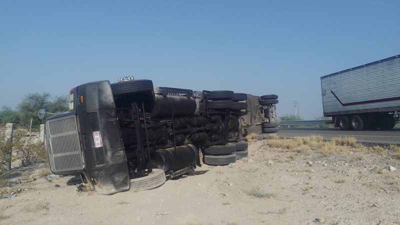 TULA, TAMPS. Tras la volcadura de un tractocamión que transportaba polietileno ocurrida en el kilómetro 13 la circulación se encuentra obstruida en el sentido de sur a norte en la Carretera Federal 101.