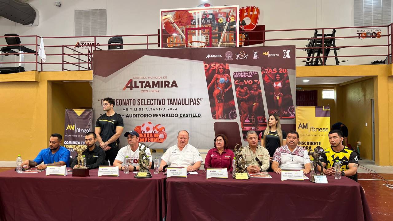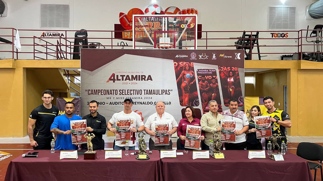ALTAMIRA, TAMPS. En el Auditorio “Reynaldo Castillo Portes” de Altamira fue llevada a cabo una rueda de prensa en donde se dio a conocer el próximo Campeonato Selectivo 2024 de Fisicoconstructivismo “Mr. y Miss. Altamira”, organizado por el Gobierno Municipal de esta ciudad y puerto, que dirige el alcalde Dr. Armando Martínez Manríquez, y la Asociación de Fisicoconstructivismo y Fitness de Tamaulipas.