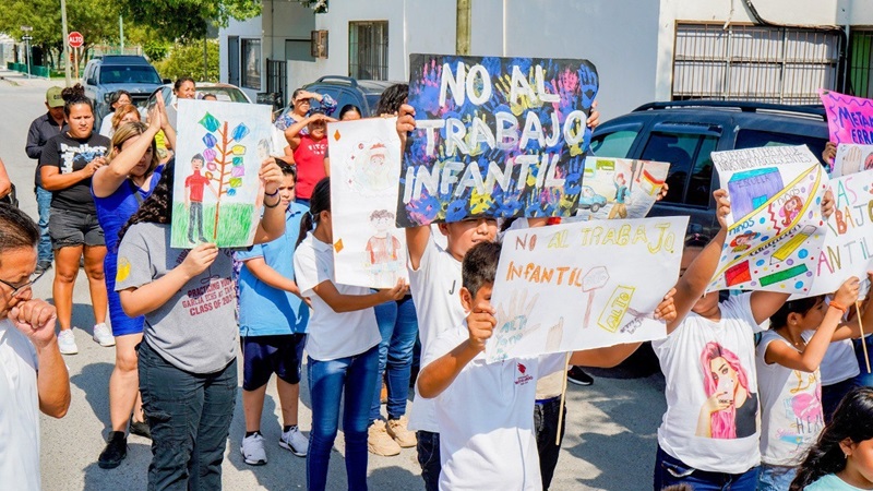 NUEVO LAREDO, TAMPS. En conmemoración del ‘Día Mundial contra el Trabajo Infantil’ el 12 de junio, los integrantes del Programa de Atención a Niñas, Niños y Adolescentes en Situación de Riesgo de Trabajo Infantil (PANNARTI) llevaron a cabo una marcha simbólica para promover la erradicación del trabajo infantil.