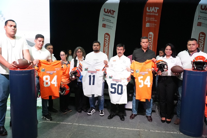 En este encuentro con estudiantes universitarios, Dámaso Anaya Alvarado hizo entrega de material deportivo al equipo que participará en la Liga Mayor de Futbol Americano a partir del mes de septiembre, y que marcará el regreso de la UAT al torneo de la Organización Nacional Estudiantil de Futbol Americano, la ONEFA.