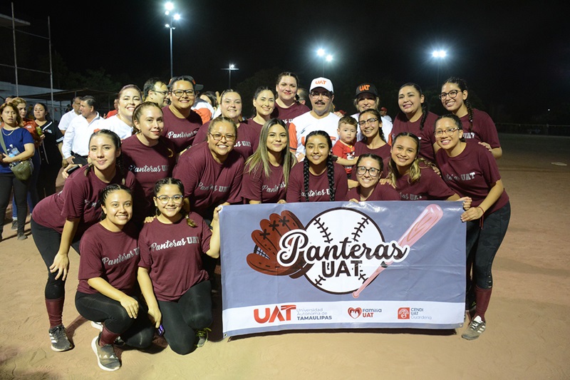 Acompañado de su esposa la Lic. Isolda Rendón de Anaya, presidenta del voluntariado universitario Familia UAT, el rector Dámaso Anaya lanzó la primera bola de la competencia que reúne a 14 equipos en las ramos femenil y varonil.