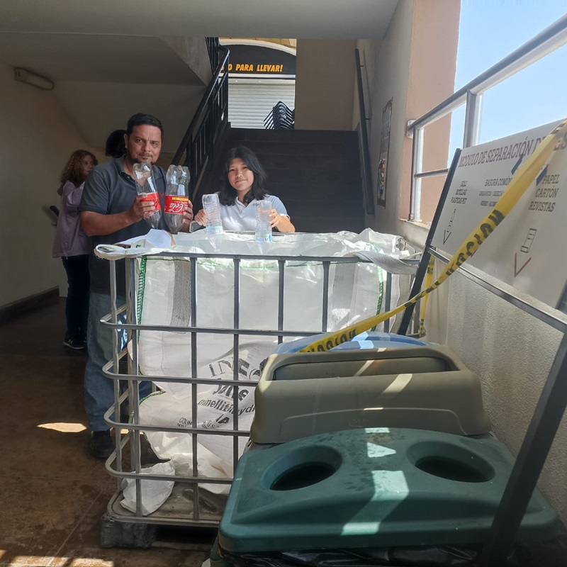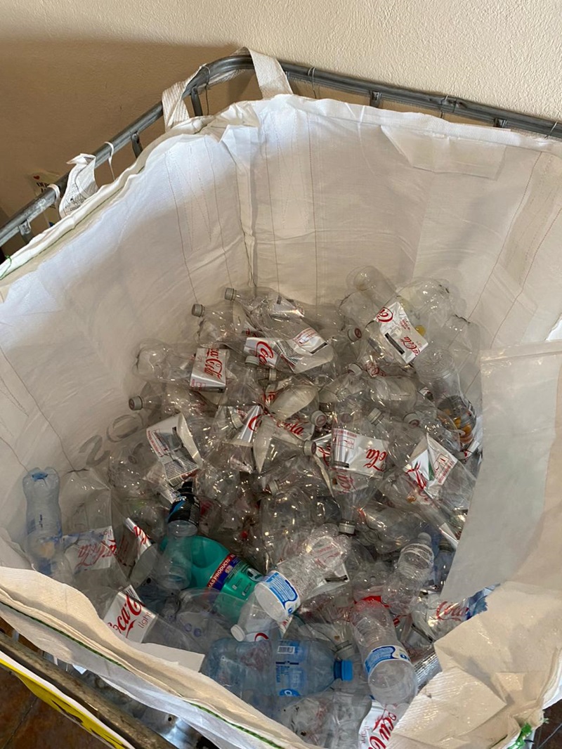 Esta actividad permanente de reciclaje consiste, principalmente, en botellas de plástico y taparroscas.