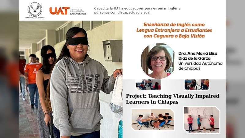 CIUDAD VICTORIA, TAMPS. La Universidad Autónoma de Tamaulipas (UAT), por medio de la Facultad de Ciencias de la Educación y Humanidades, reafirmó su compromiso con la inclusión educativa al llevar a cabo el taller titulado “Enseñanza de inglés como lengua extranjera a estudiantes con ceguera o baja visión”.