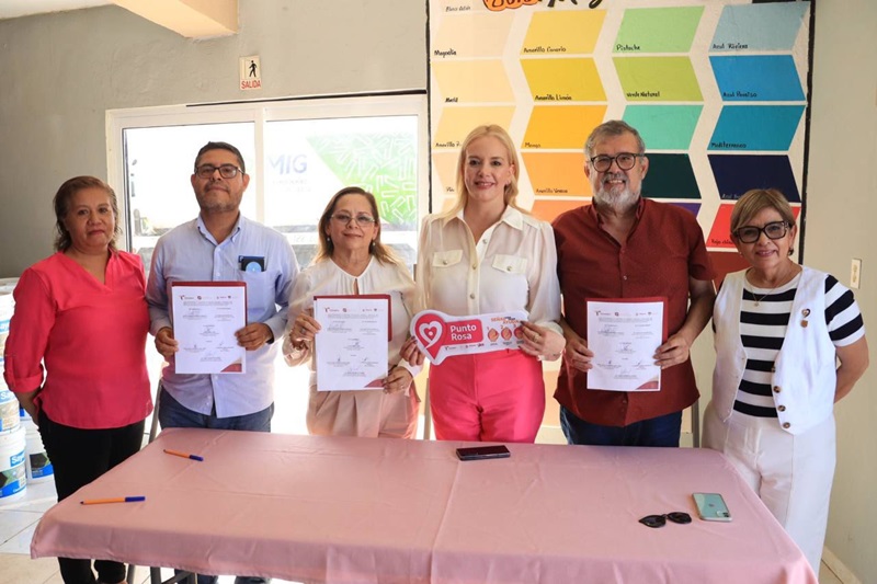 ALTAMIRA, TAMPS. En una acción coordinada para promover un espacio seguro para las mujeres, la presidenta del Sistema DIF en Altamira, Rossy Luque de Martínez, signó un importante convenio transversal de colaboración con el Instituto de la Mujer del Gobierno del Estado de Tamaulipas, lo anterior para la creación de un llamado “Punto Rosa” en el comercio “Pintura Sayer”, localizado en Monte Alto.