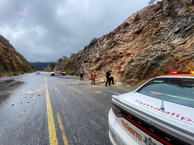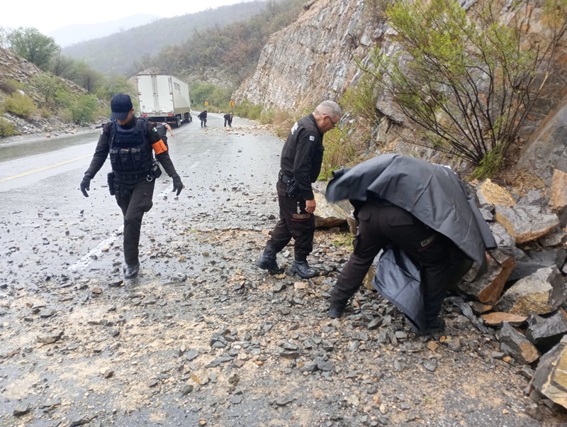 Durante los días de lluvia han coadyuvado en el retiro de piedras que caen desde la sierra a la carpeta asfáltica, acordonamiento de áreas de riesgo y el auxilio a ciudadanos que presentan afectaciones en sus vehículos derivados de las precipitaciones.